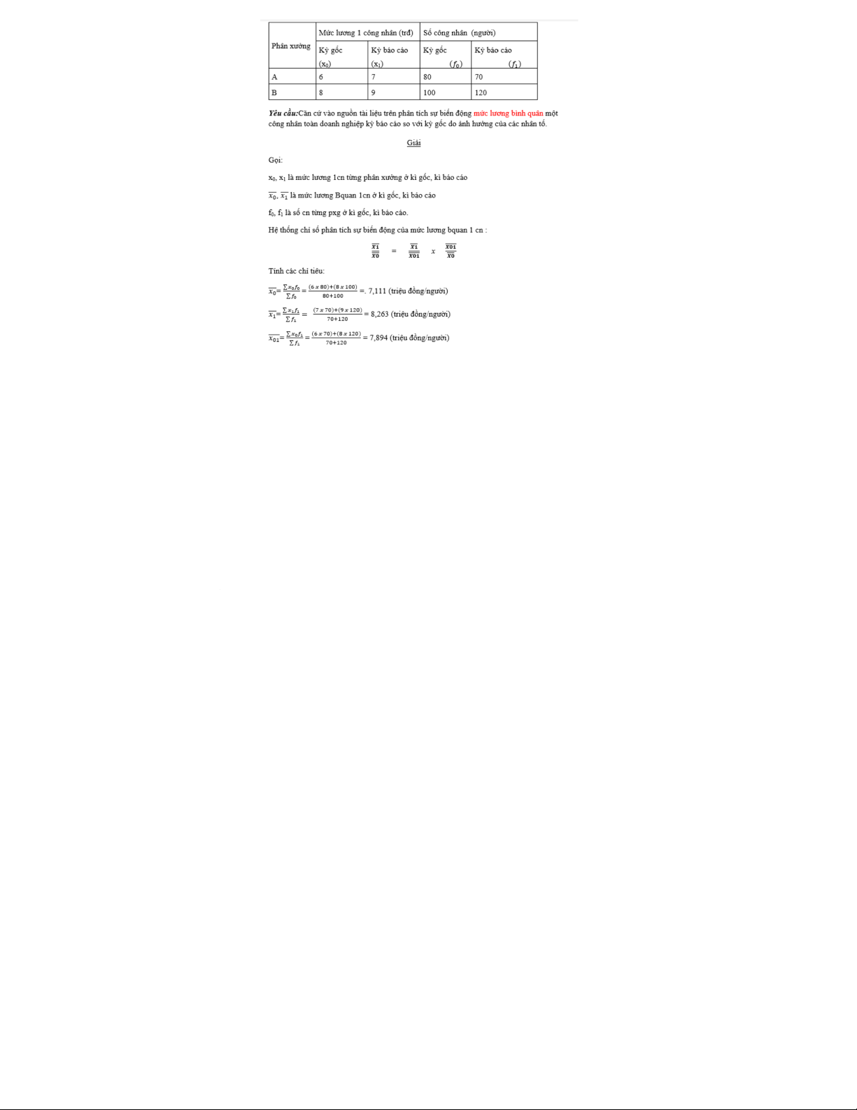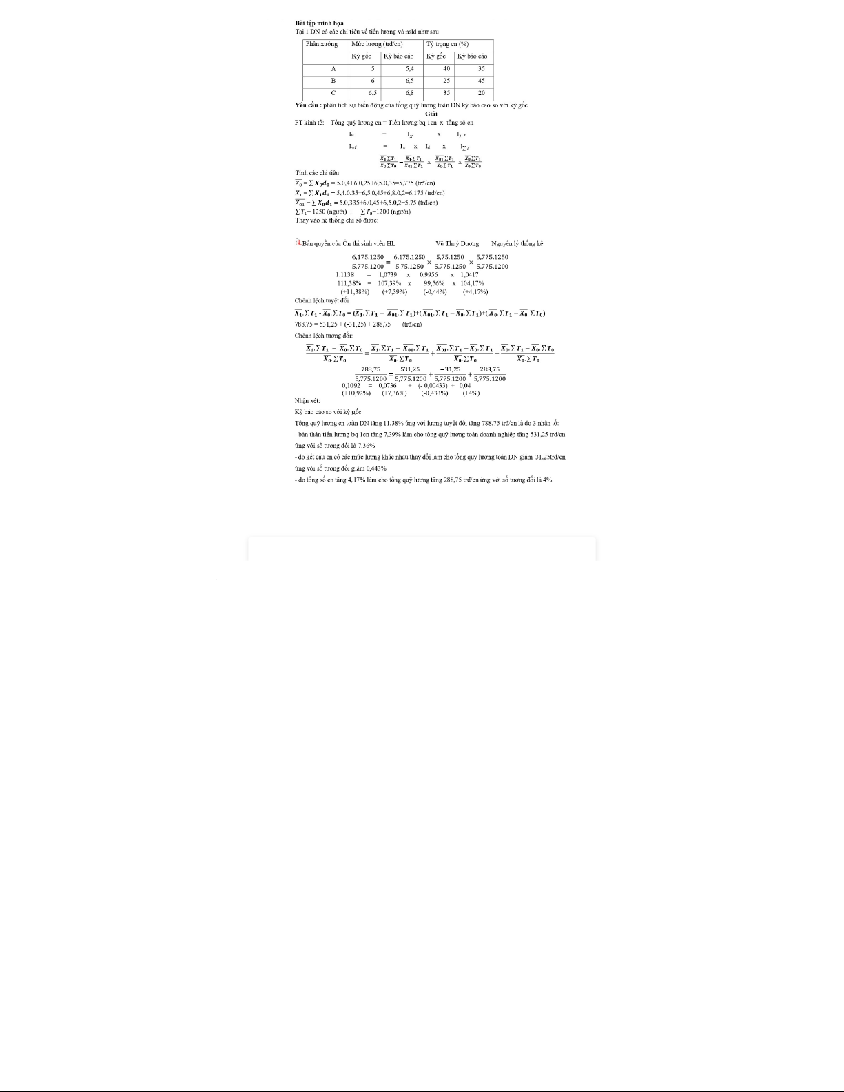 cho tiền lương bình quân một cn kỳ báo cáo so với kỳ gốc tăng 0,369 triệu