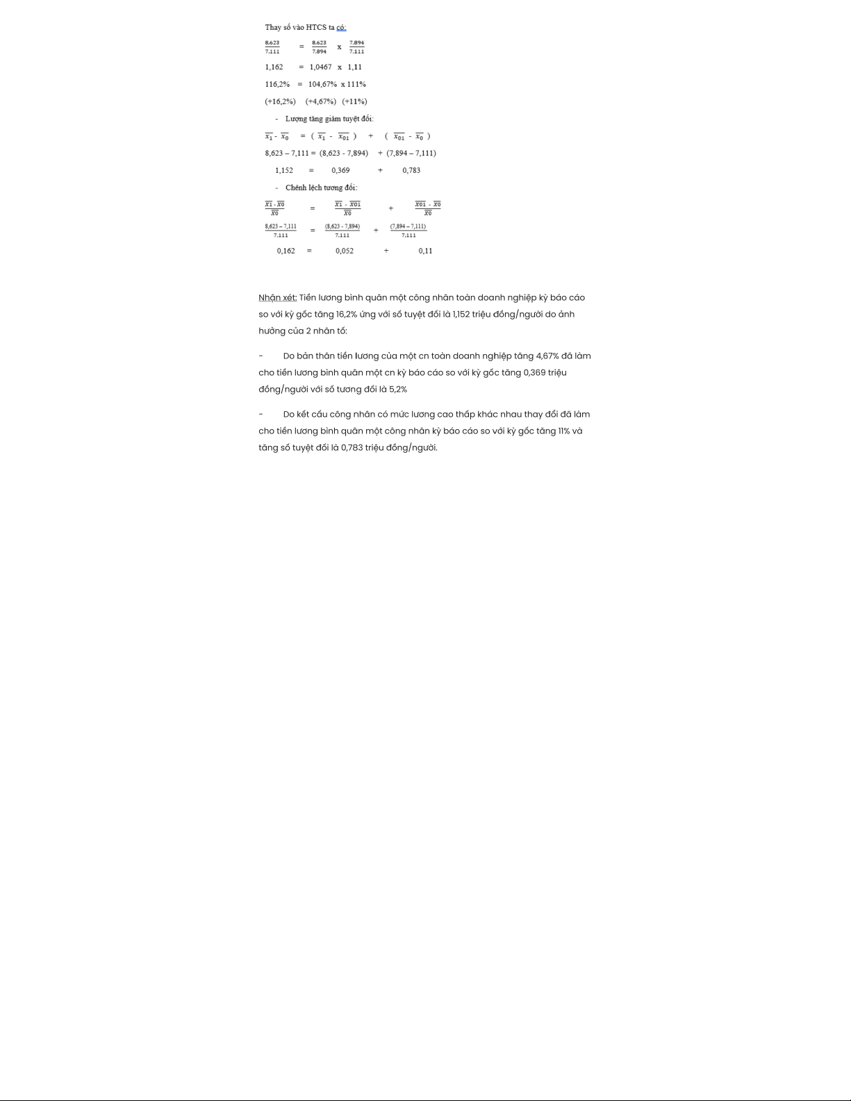 so với kỳ gốc tăng 16,2% ứng với số tuyệt đối là 1,152 triệu đồng/người do ảnh hưởng của 2 nhân tố: