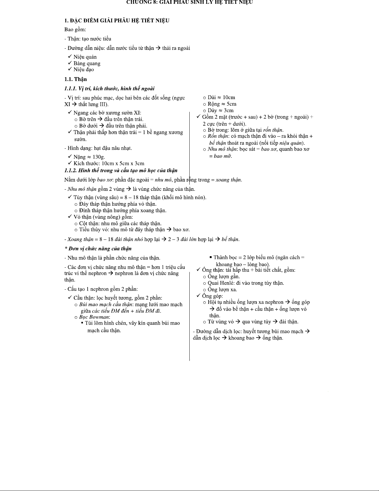 CHƯƠNG 8: GIẢI PHẪU SINH LÝ HỆ TIẾT NIỆU VÀ CÁC CHỨC NĂNG CỦA THẬN