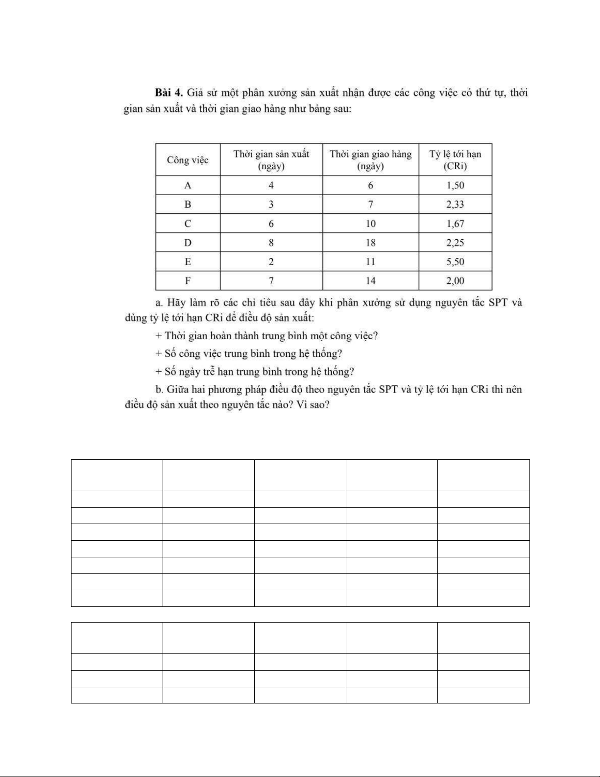chọn nguyên tắc SPT vì có tất cả các chỉ số đều tối ưu hơn Cri Bài 9. Bài làm