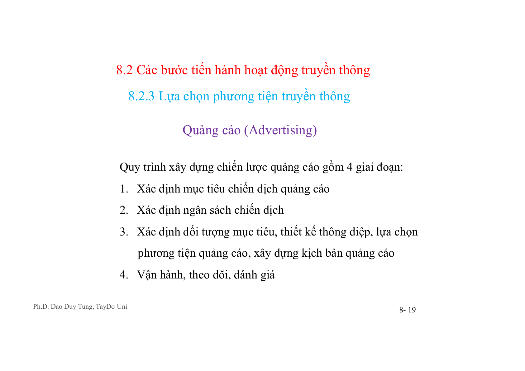 8.2.3 Lựa chọn phương tiện truyền thông Quảng cáo (Advertising) (Nguồn: Internet) Ph.D. Dao Duy Tung, TayDo 18