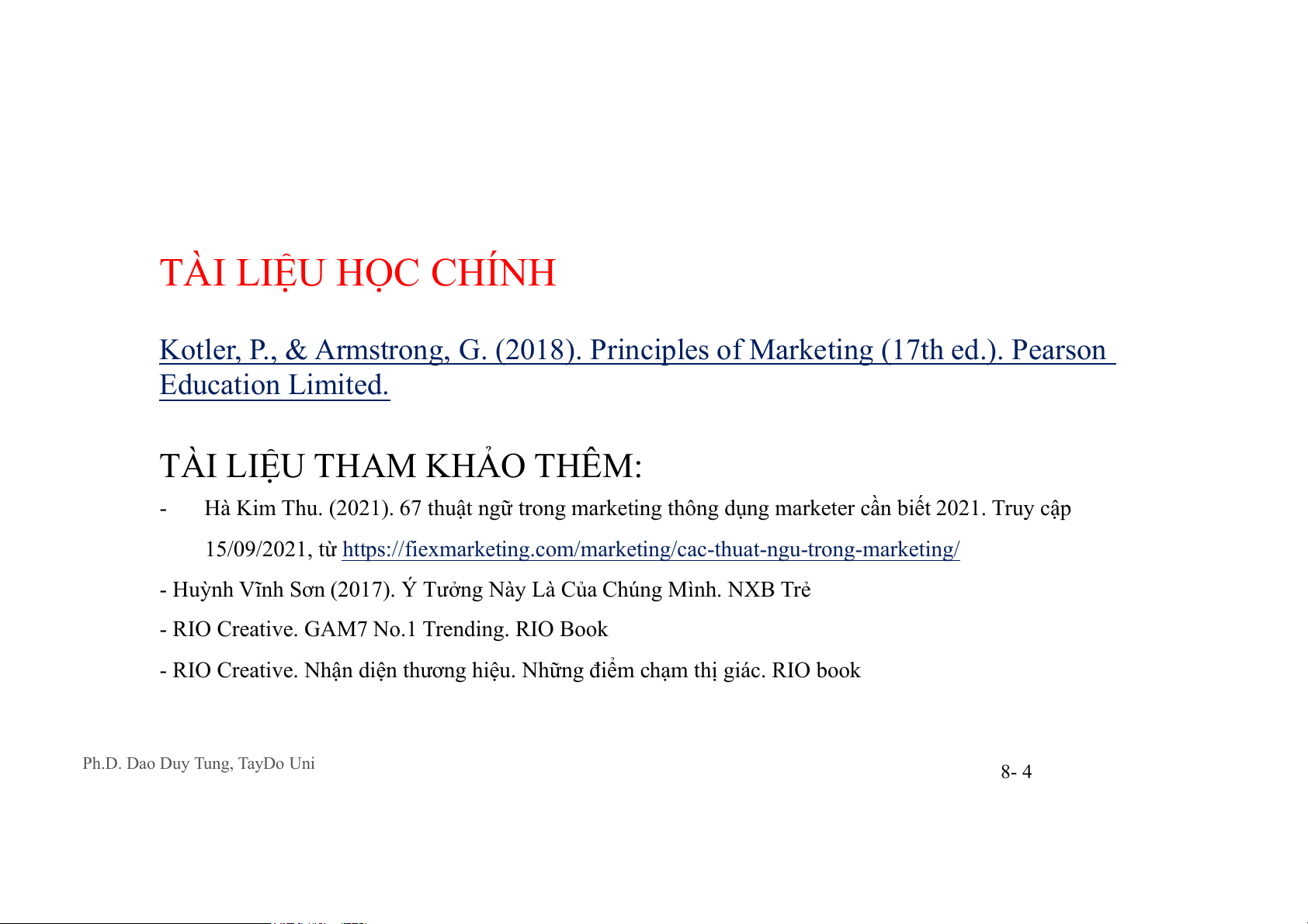 Kotler, P., & Armstrong, G. (2018). Principles of Marketing (17th ed.). Pearson Education Limited. TÀI LIỆU THAM KHẢO THÊM: -