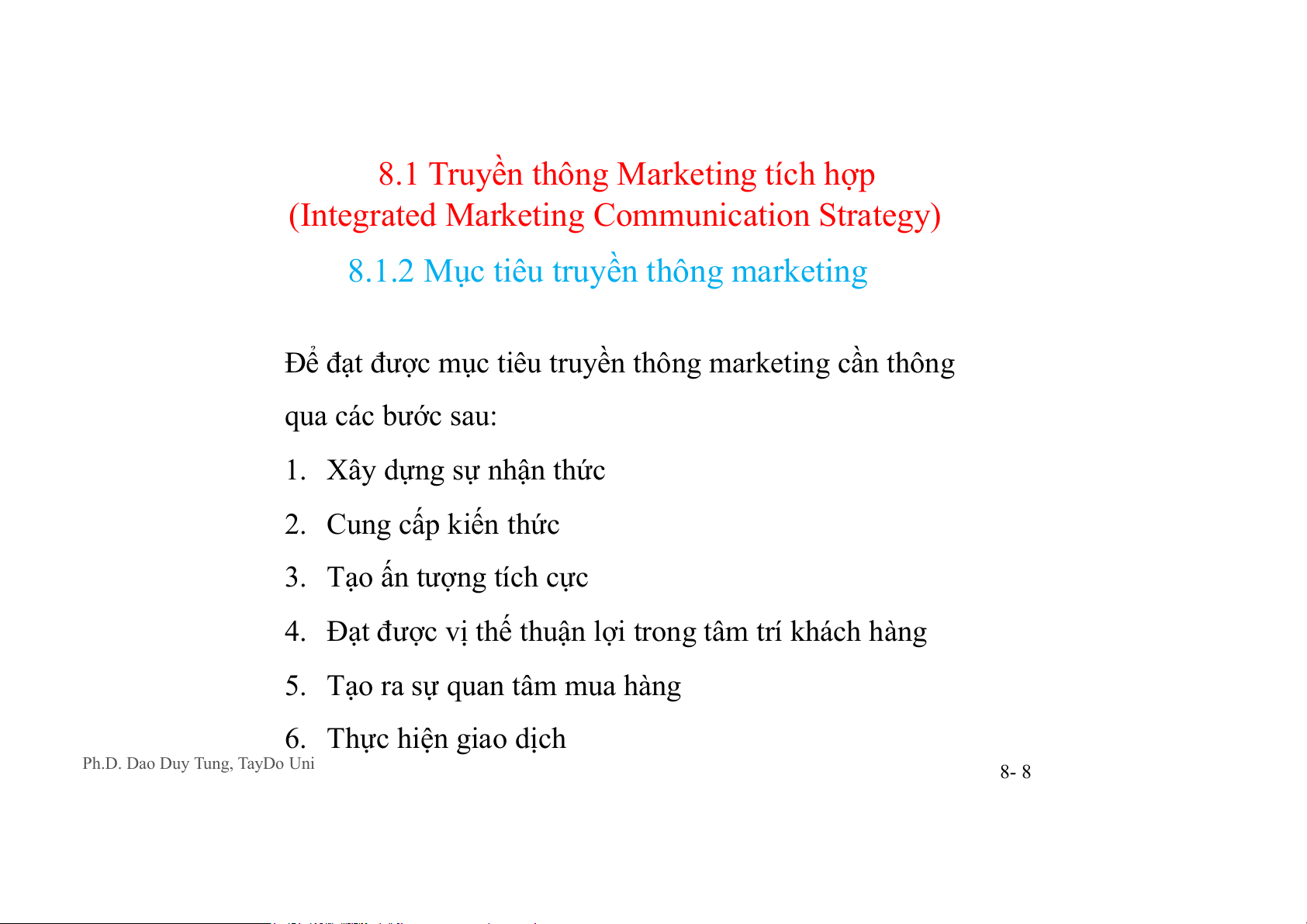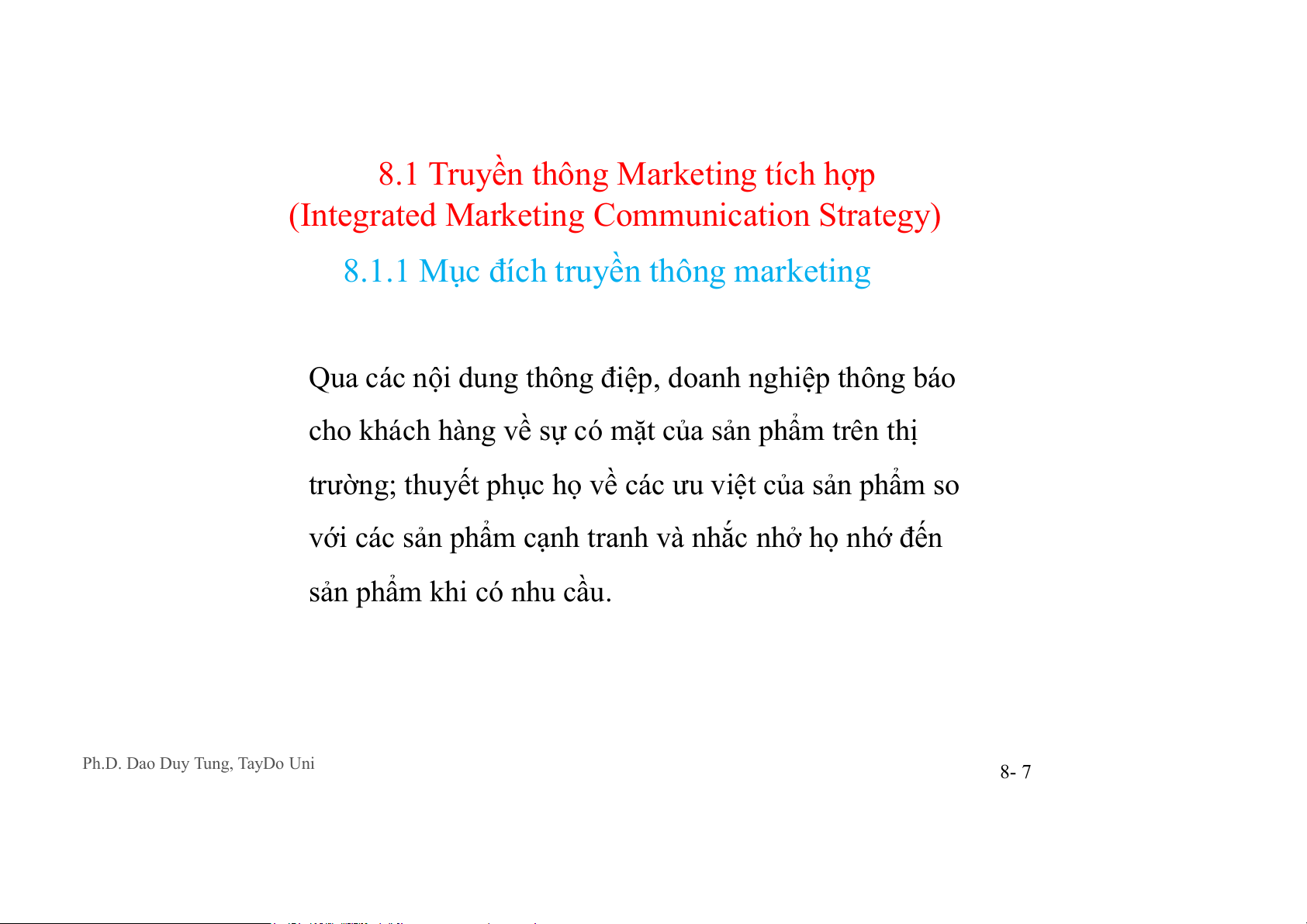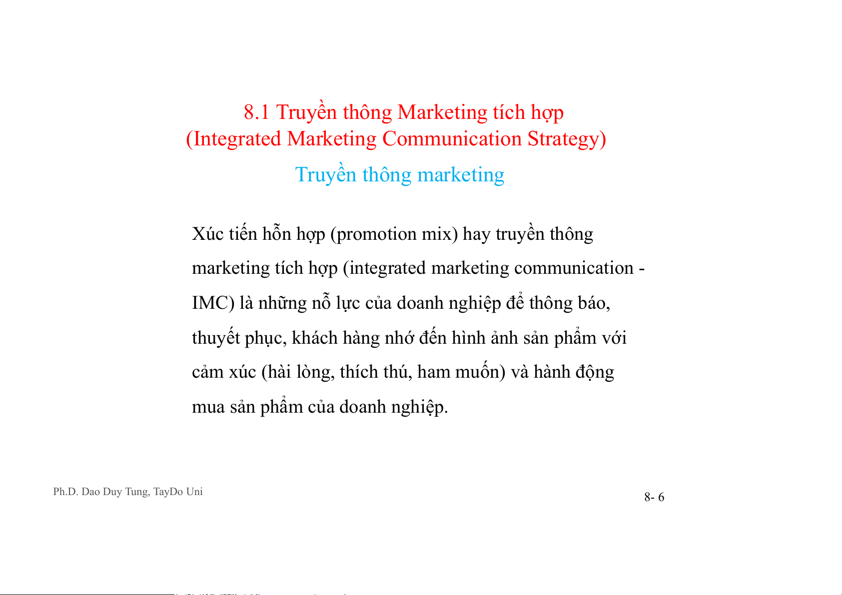 CHIẾN LƯỢC TRUYỀN THÔNG 3 MARKETING TÍCH HỢP (IMC) Ph.D. Dao Duy Tung, Tay Do Uni TÀI LIỆU HỌC CHÍNH