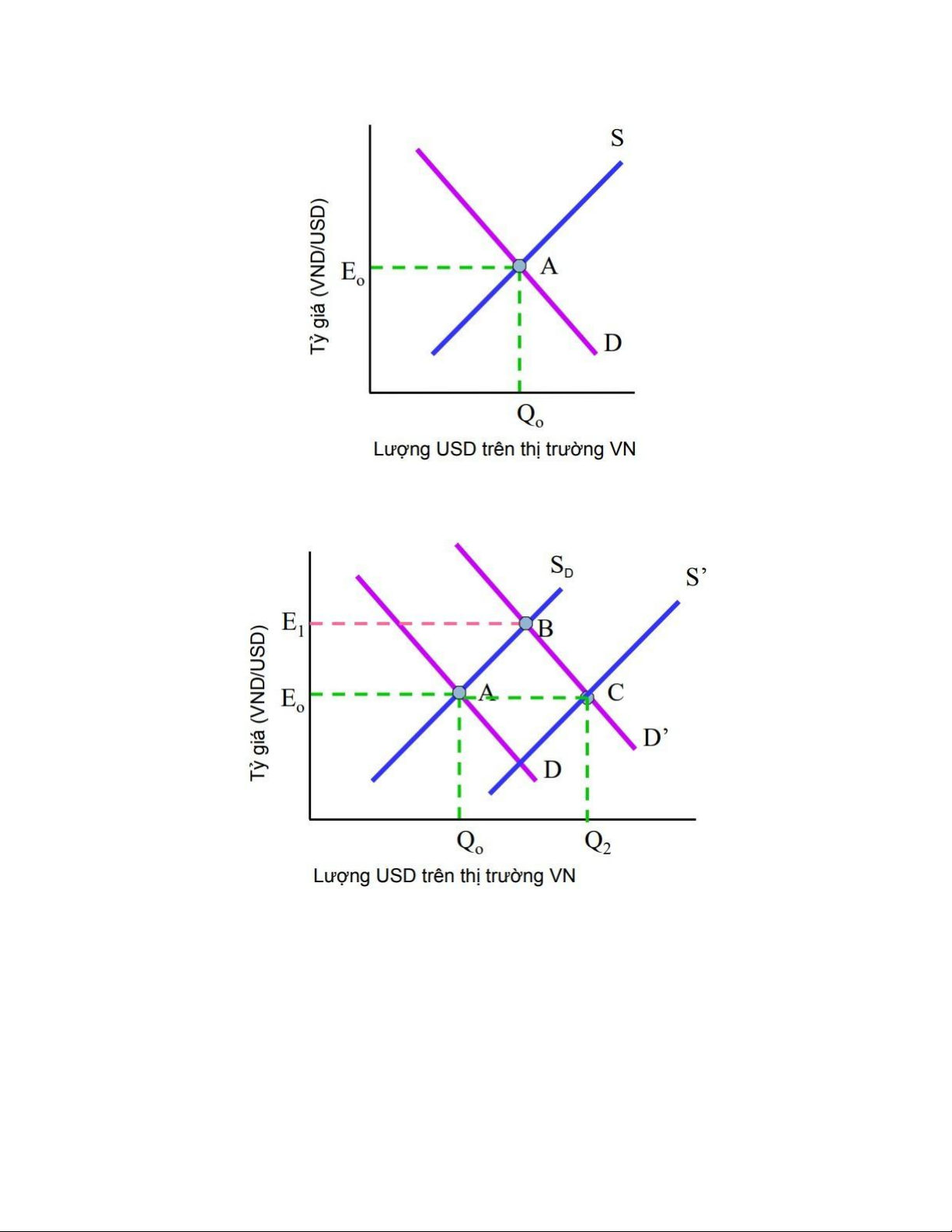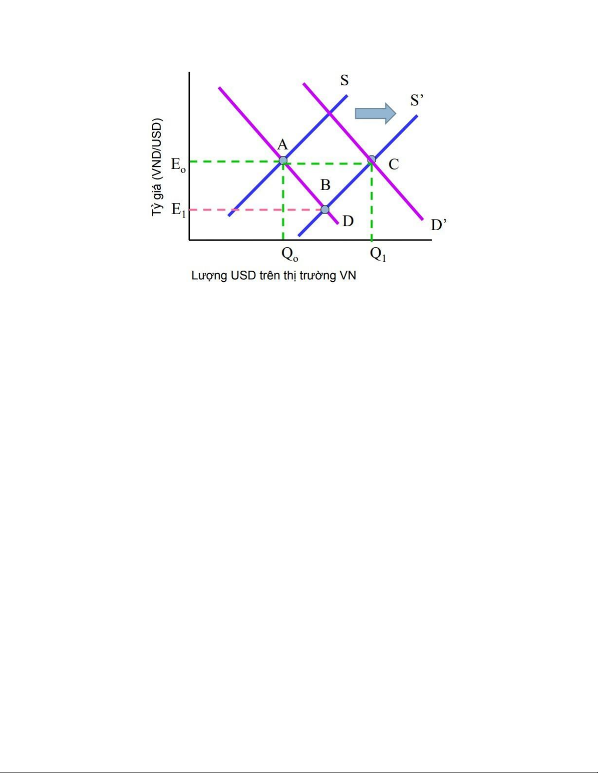 - Khi cung USD tăng, tỷ giá giảm E0 xuống E1