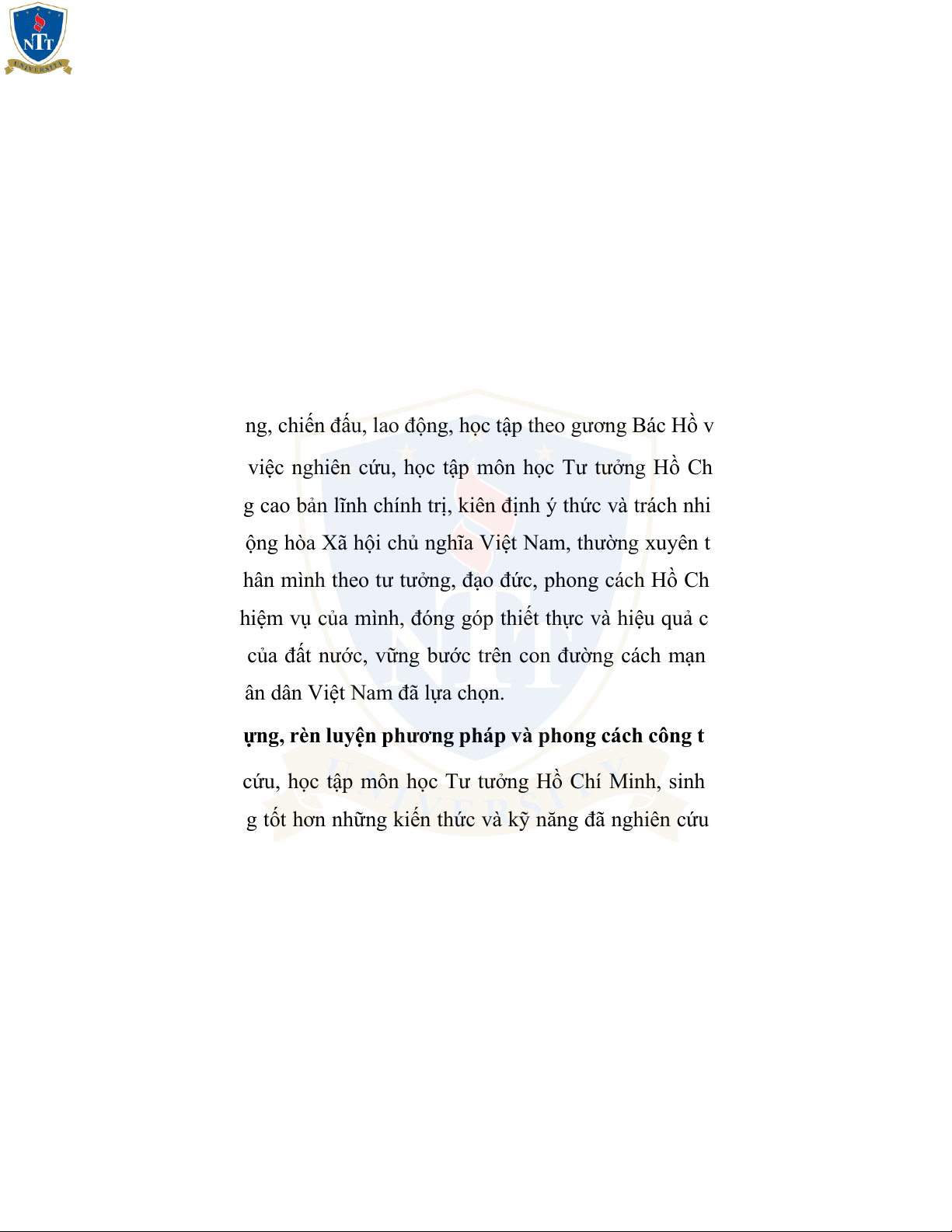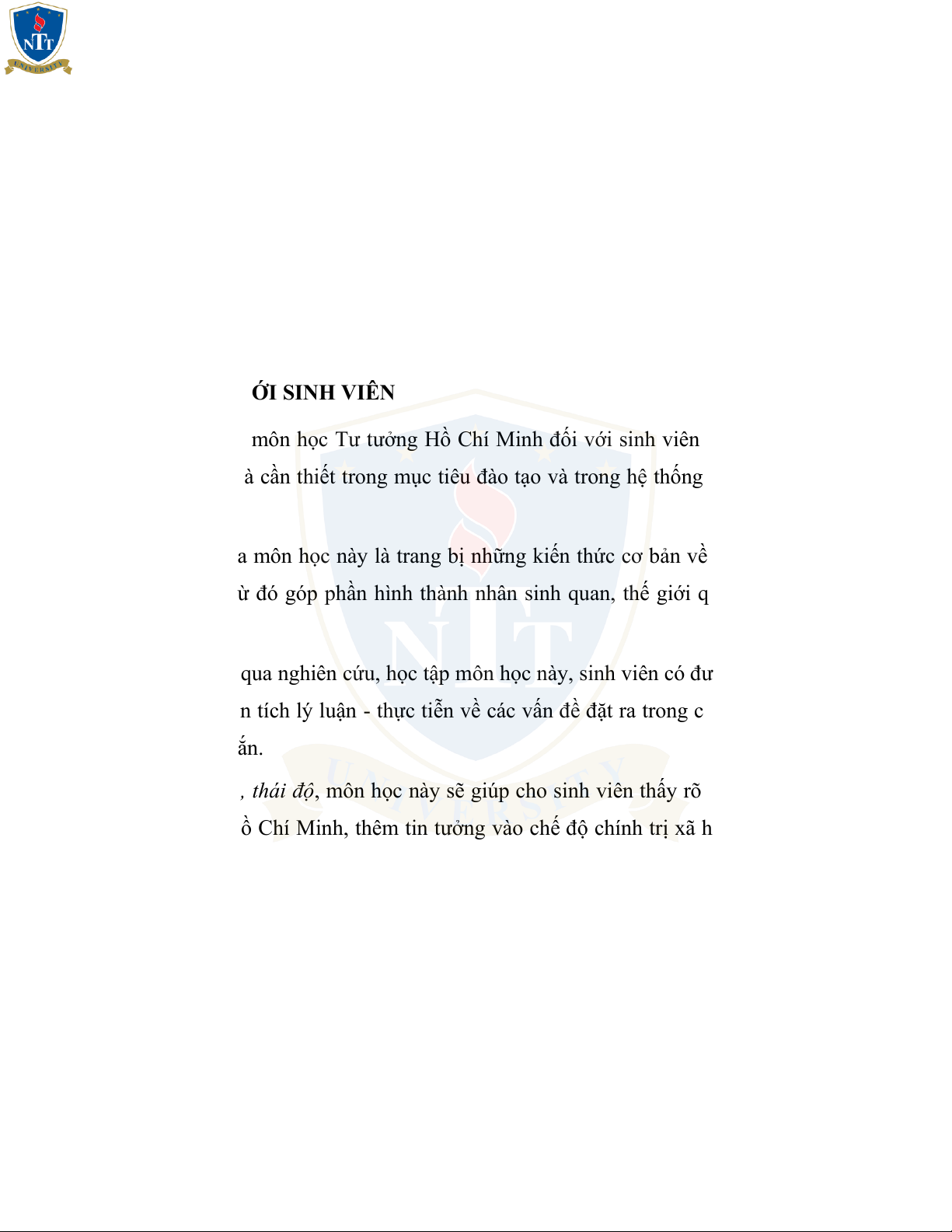 Chí Minh; từ đó góp phần hình thành nhân sinh quan, thế giới quan cho sinh viên.