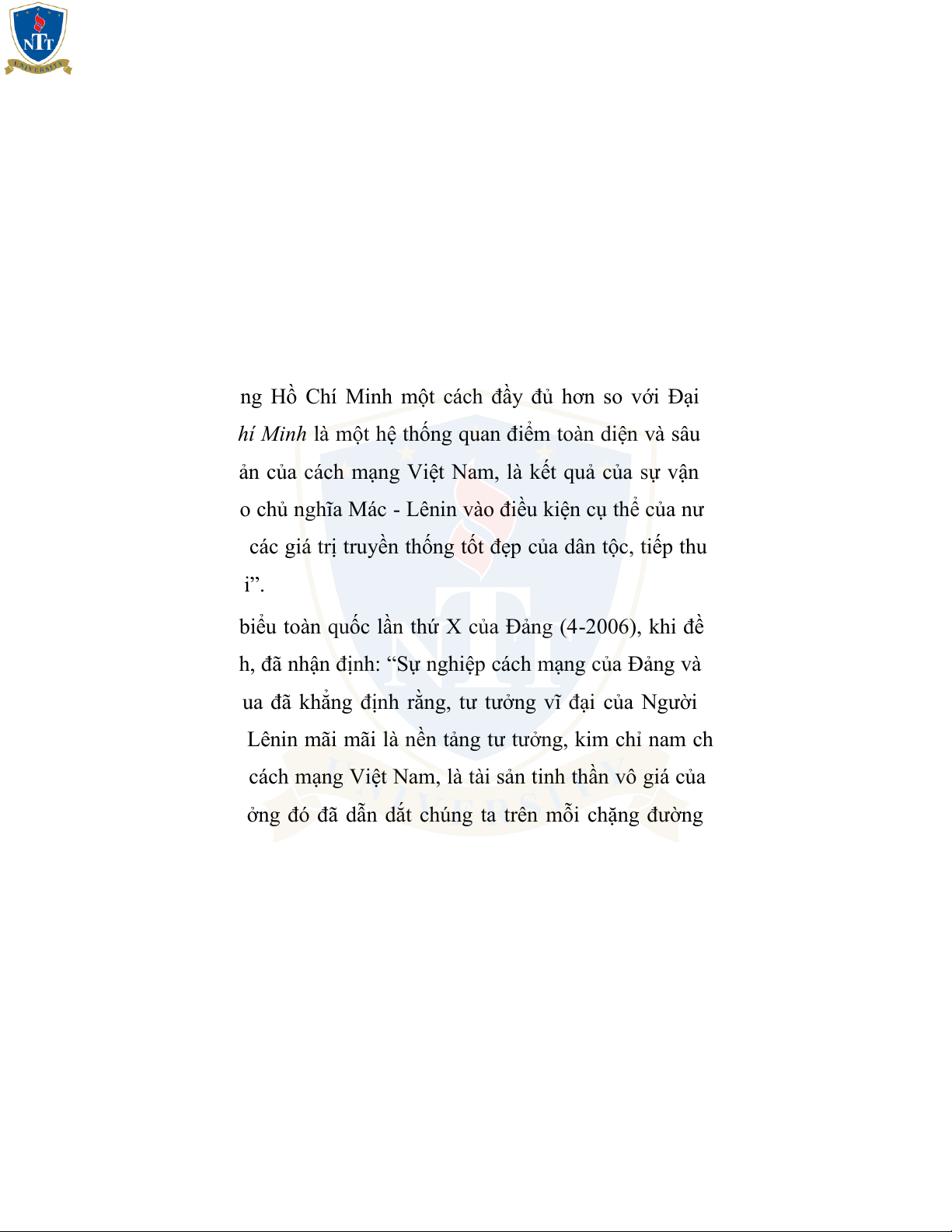 Đại hội đại biểu toàn quốc lần thứ X của Đảng (4-2006), khi đề cập tư tưởng