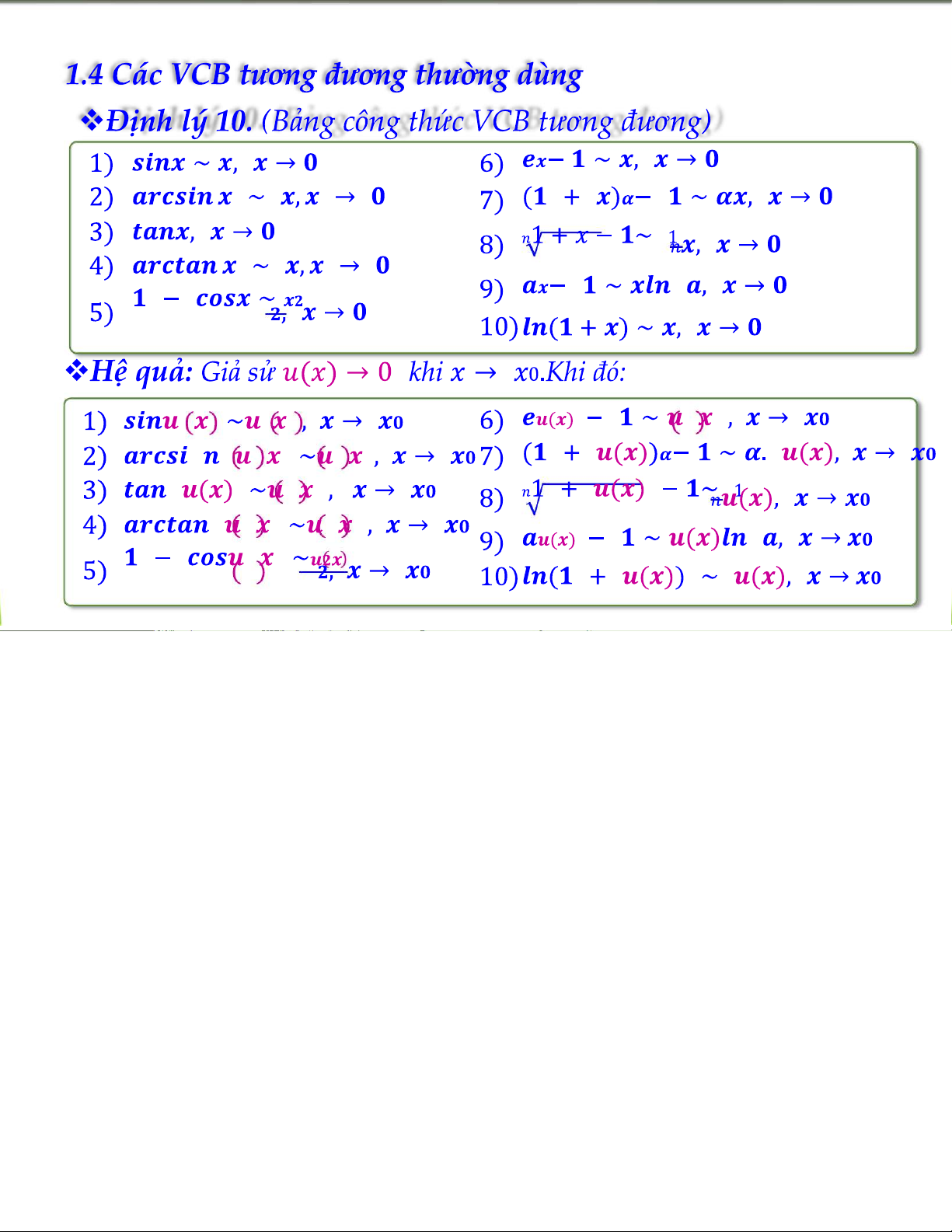 Chương I: Giới Hạn Vô cùng Bé và Vô cùng Lớn - Bài Giảng Giải Tích 1