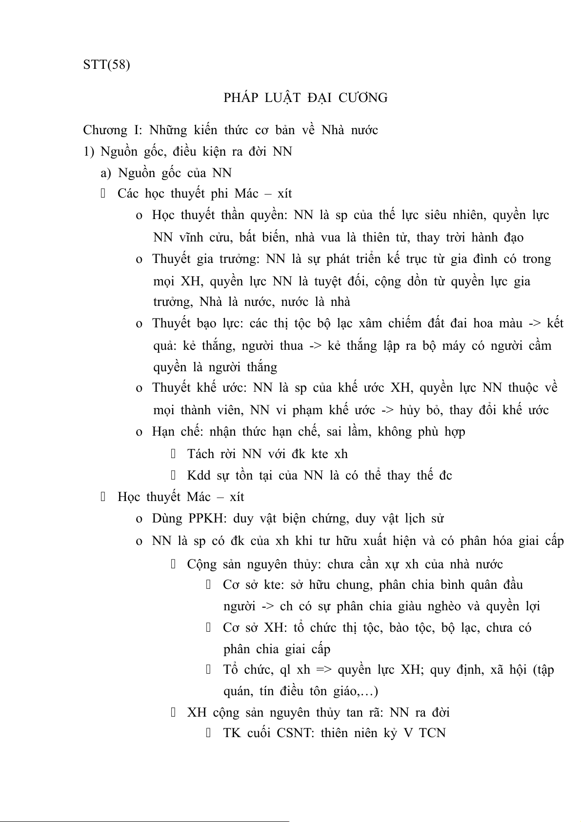 Kdd sự tồn tại của NN là có thể thay thế đc Học thuyết Mác – xít