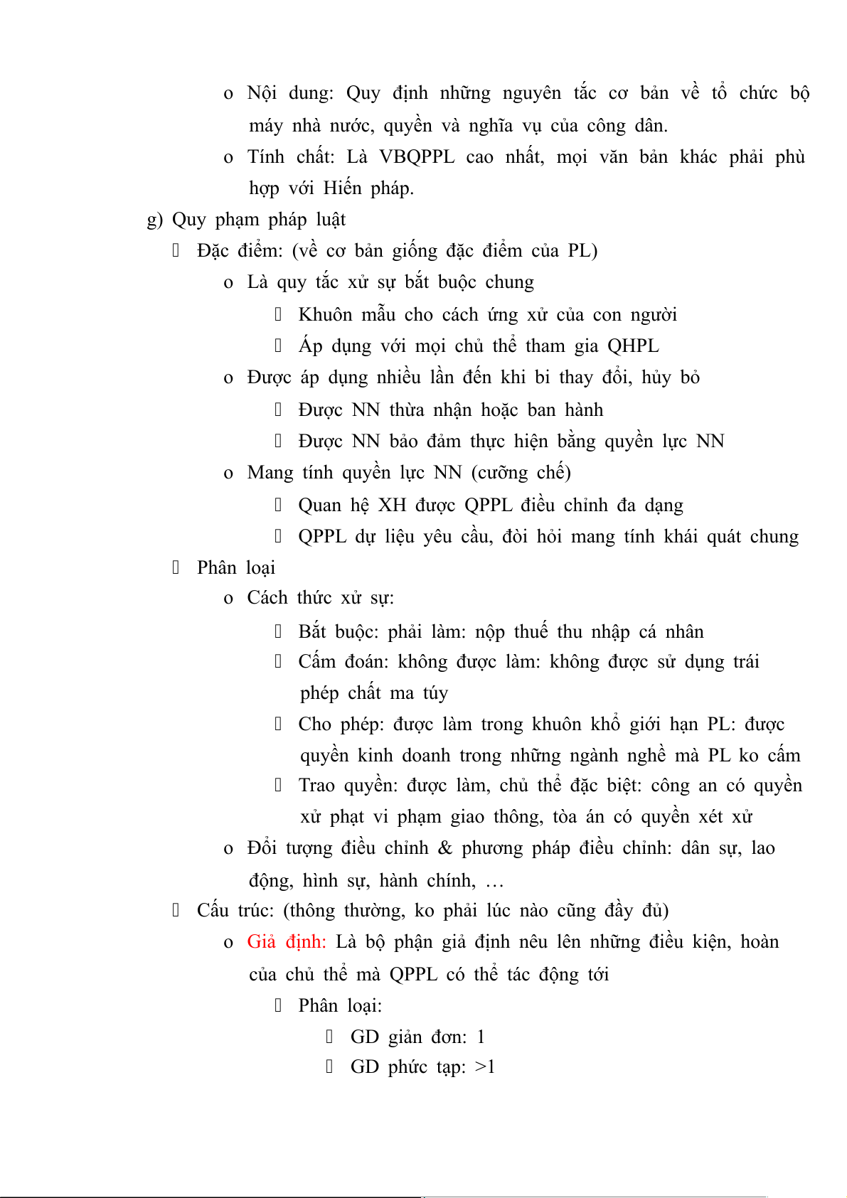 o Tính chất: Là VBQPPL cao nhất, mọi văn bản khác phải phù hợp với Hiến pháp. g) Quy phạm pháp luật