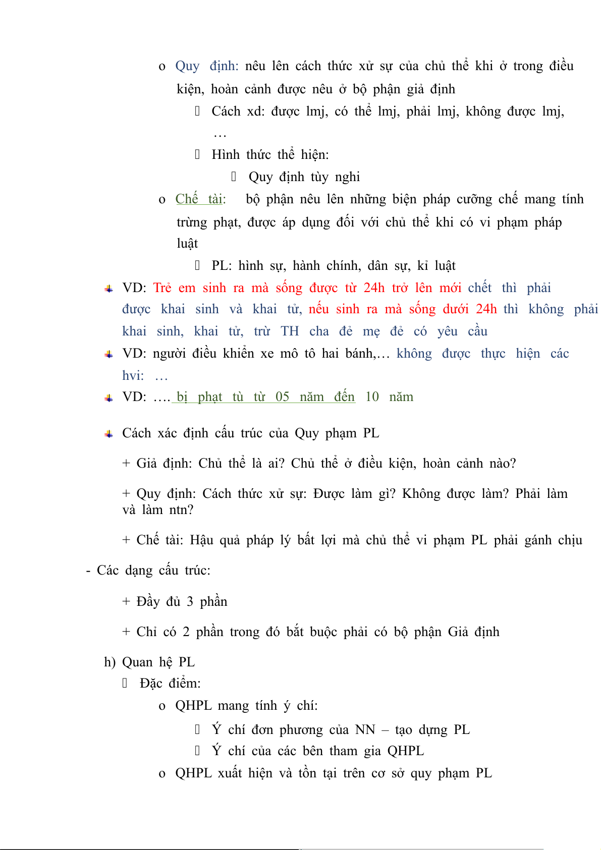 + Chỉ có 2 phần trong đó bắt buộc phải có bộ phận Giả định h) Quan hệ PL Đặc điểm: o QHPL mang tính ý chí: