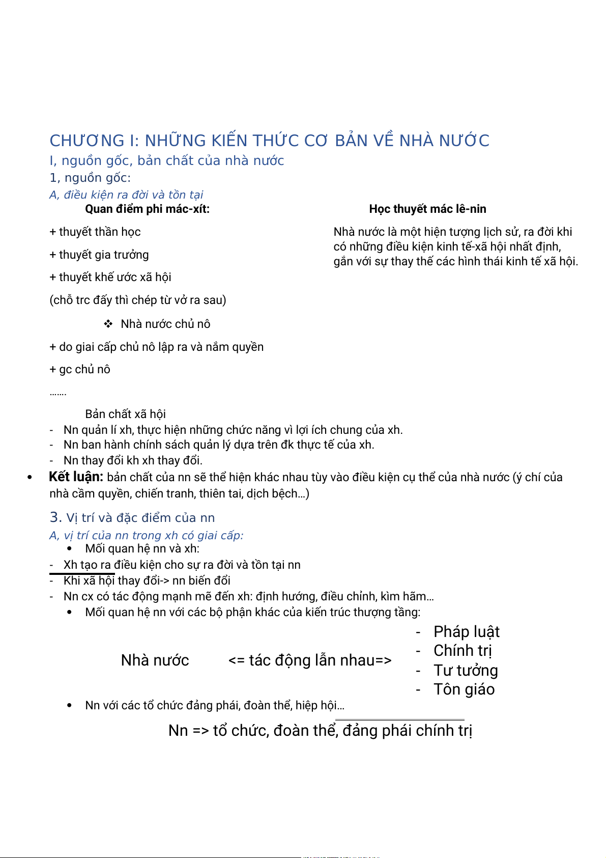 CHƯƠNG I: NHỮNG KIẾN THỨC CƠ BẢN VỀ NHÀ NƯỚC
