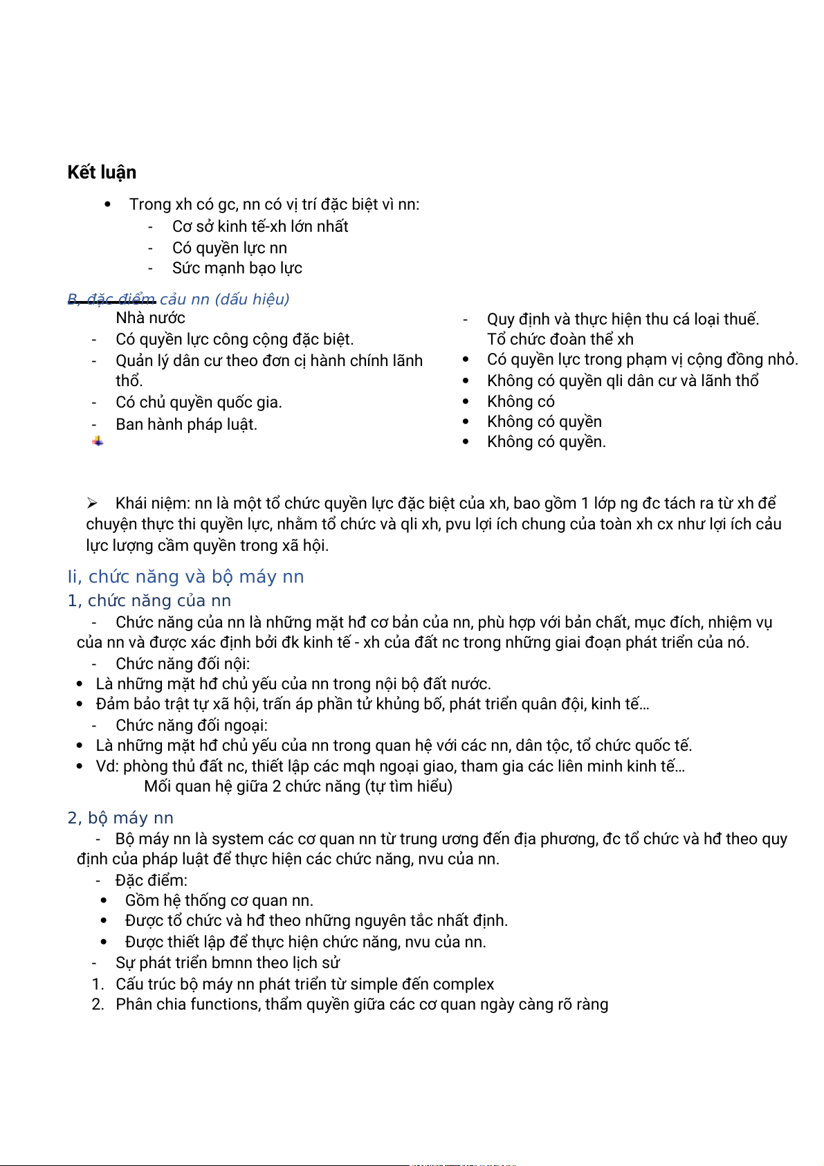 B, đặc điểm cảu nn (dấu hiệu) Nhà nước -