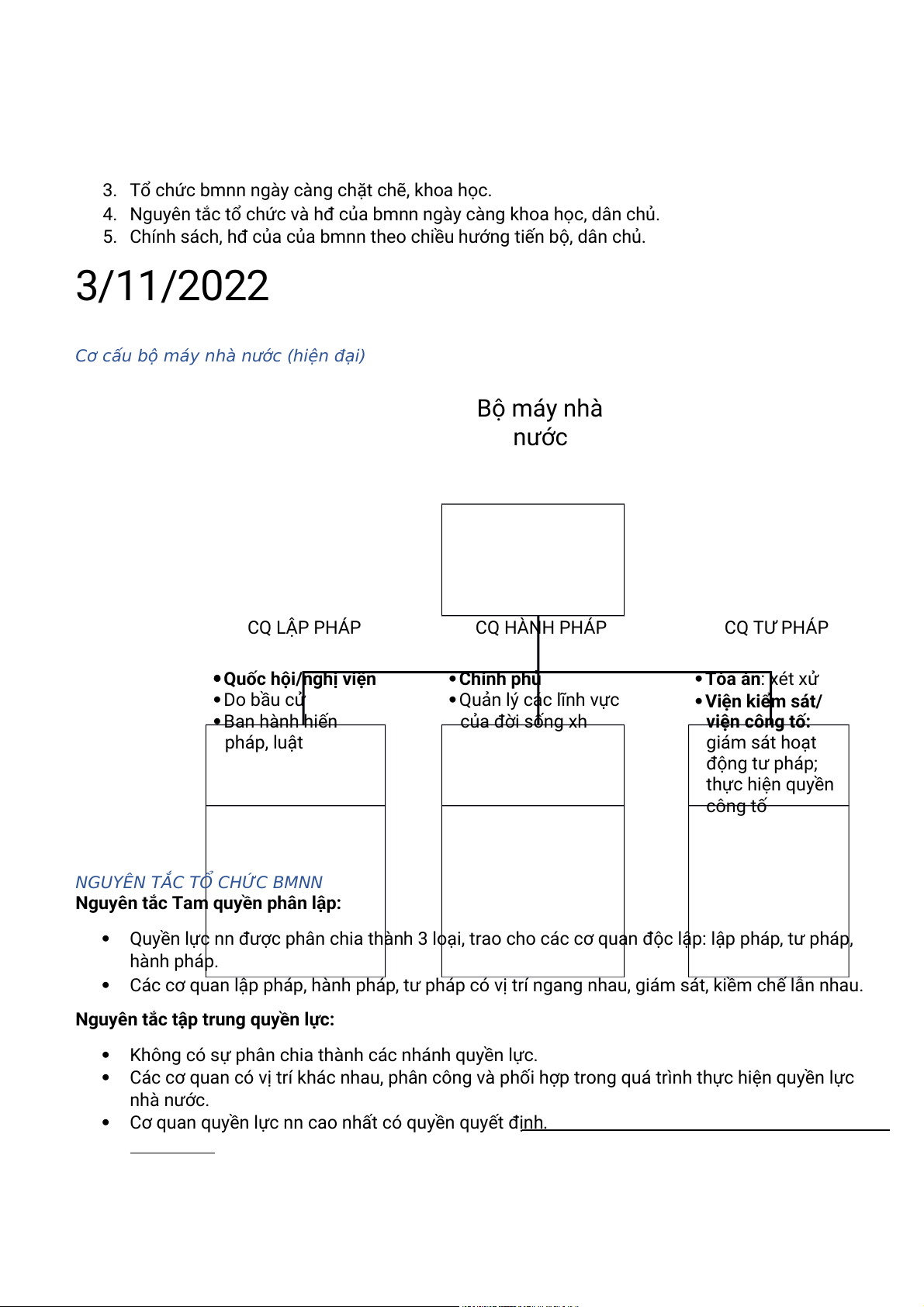 Quyền lực nn được phân chia thành 3 loại, trao cho các cơ quan độc lập: lập pháp, tư pháp, hành pháp.