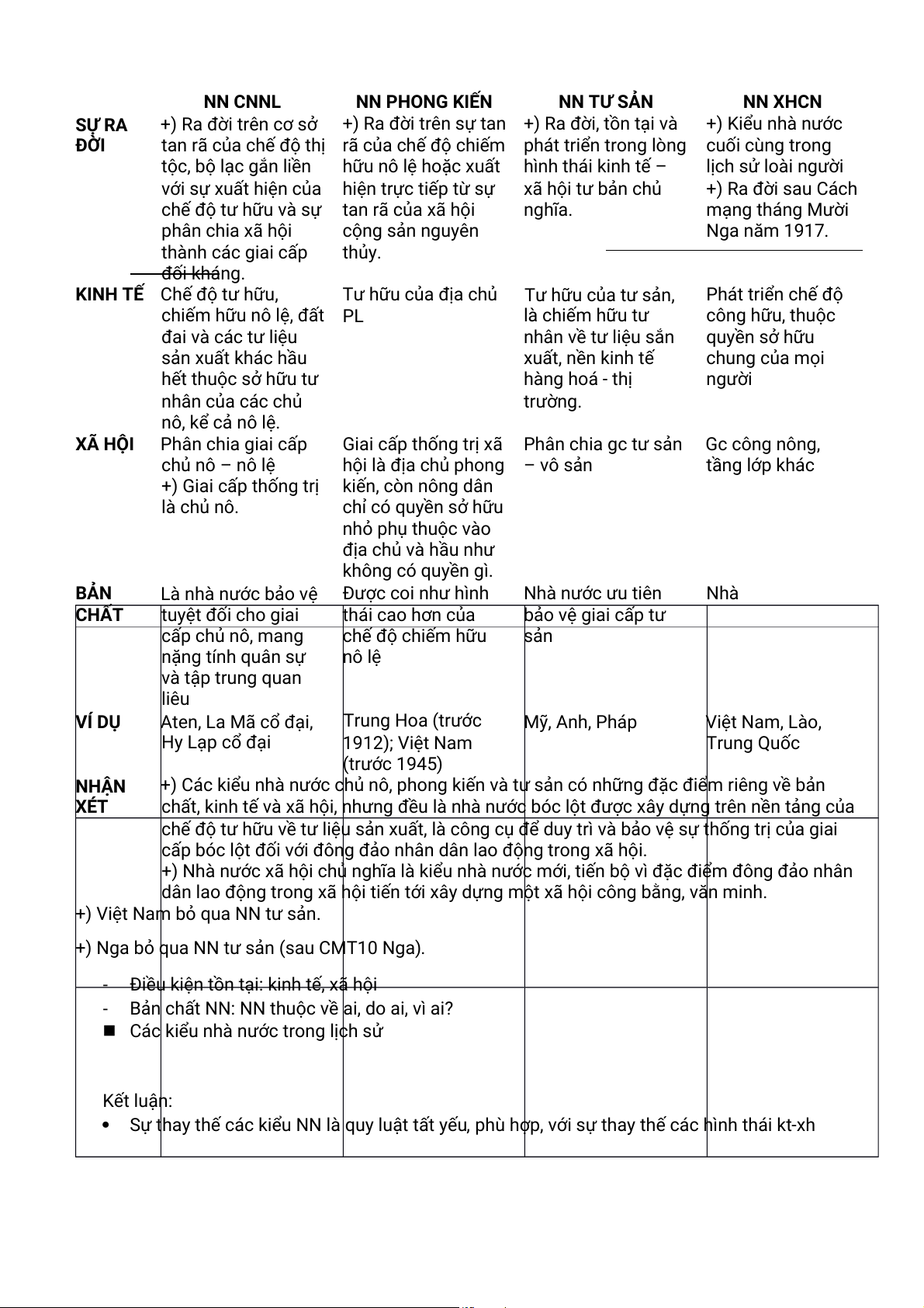 +) Các kiểu nhà nước chủ nô, phong kiến và tư sản có những đặc điểm riêng về bản XÉT