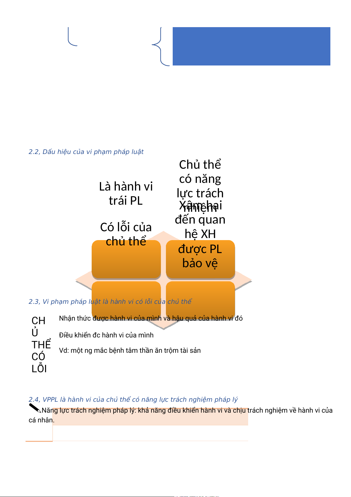 2.4, VPPL là hành vi của chủ thể có năng lực trách nghiệm pháp lý