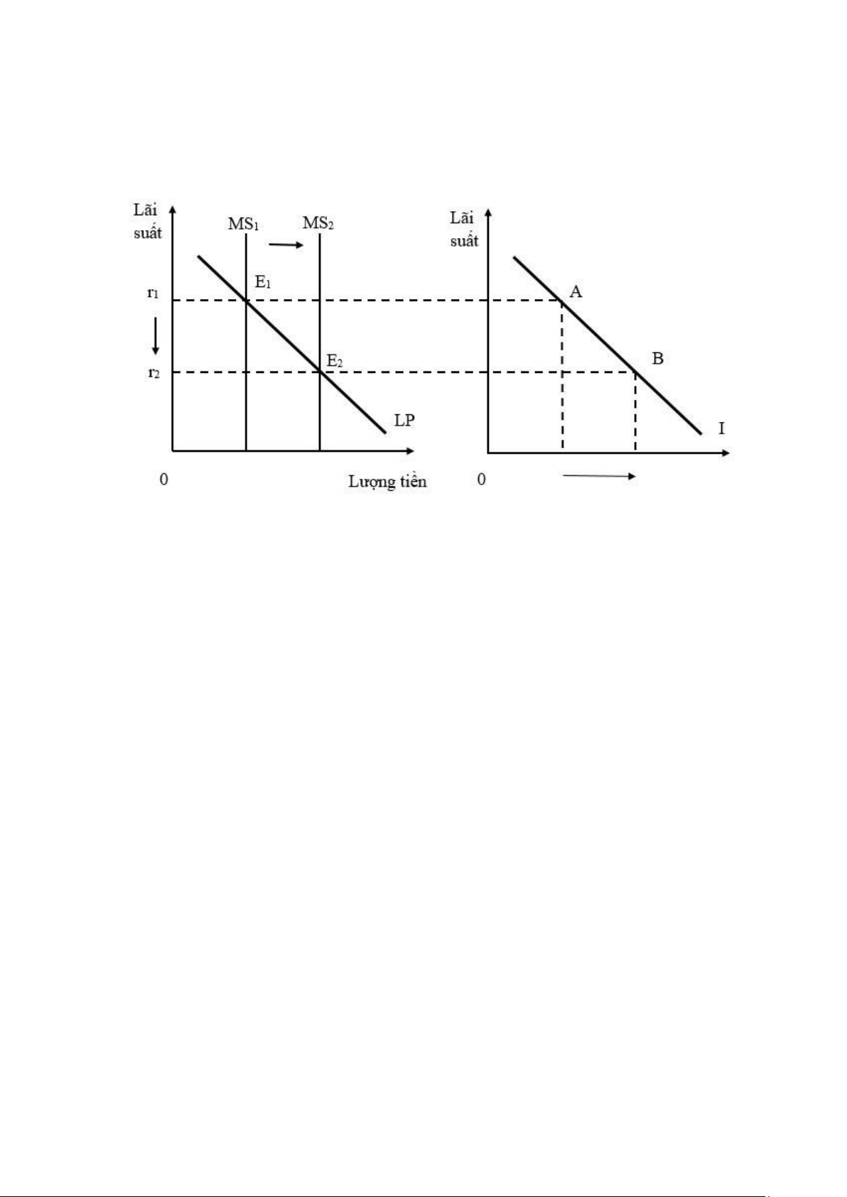 bằng mới tại điểm E2 là giao điểm của đường MS2 với đường cầu tiền (LP). Tại