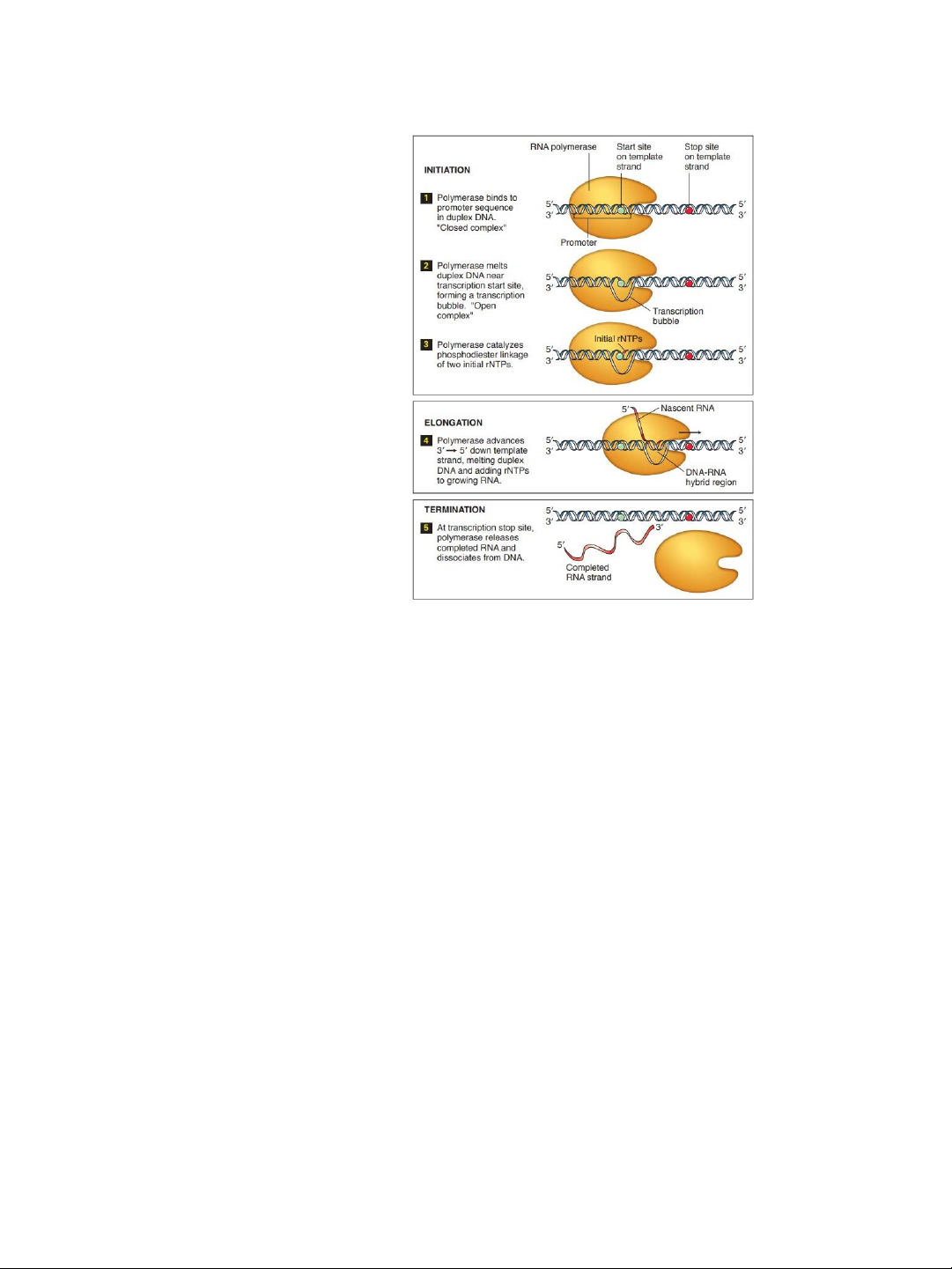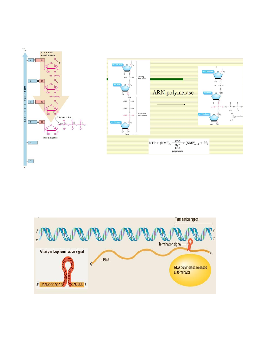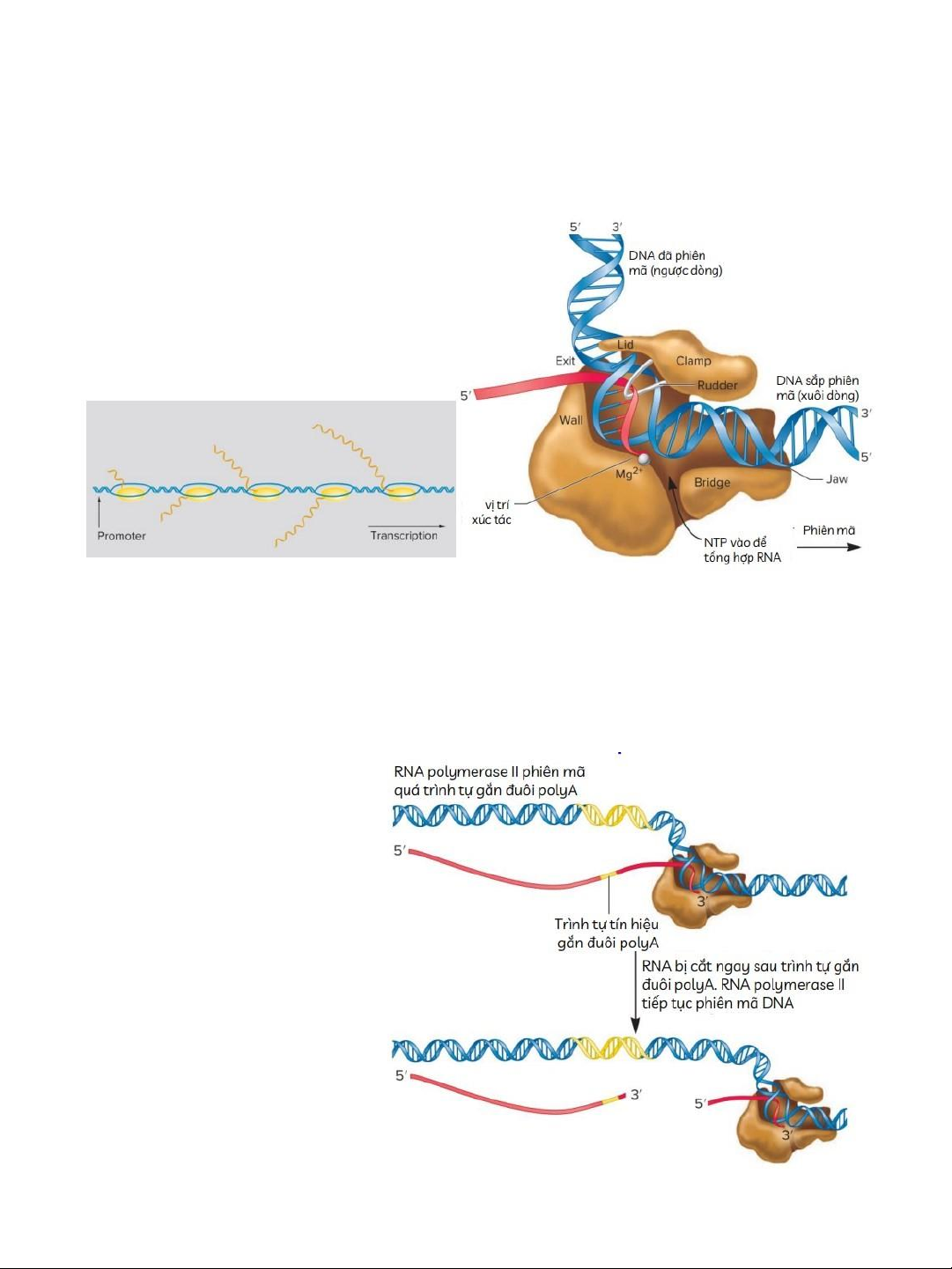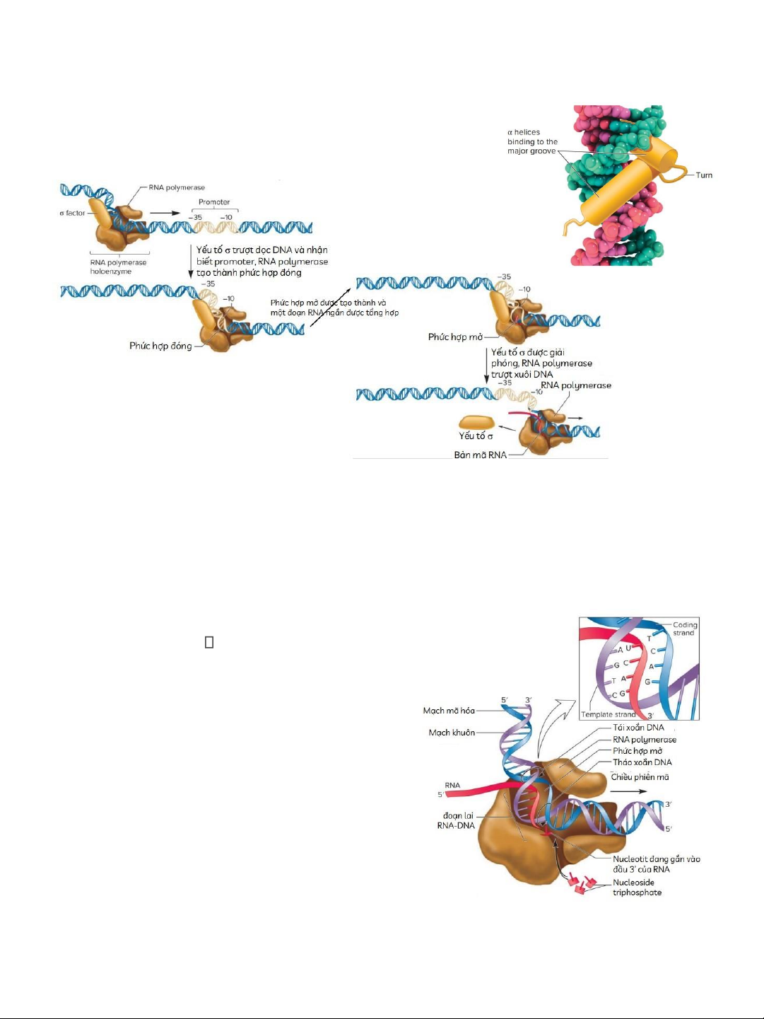 -giãn xoắn mạch DNA ở phía trước, -tổng hợp chuỗi RNA,