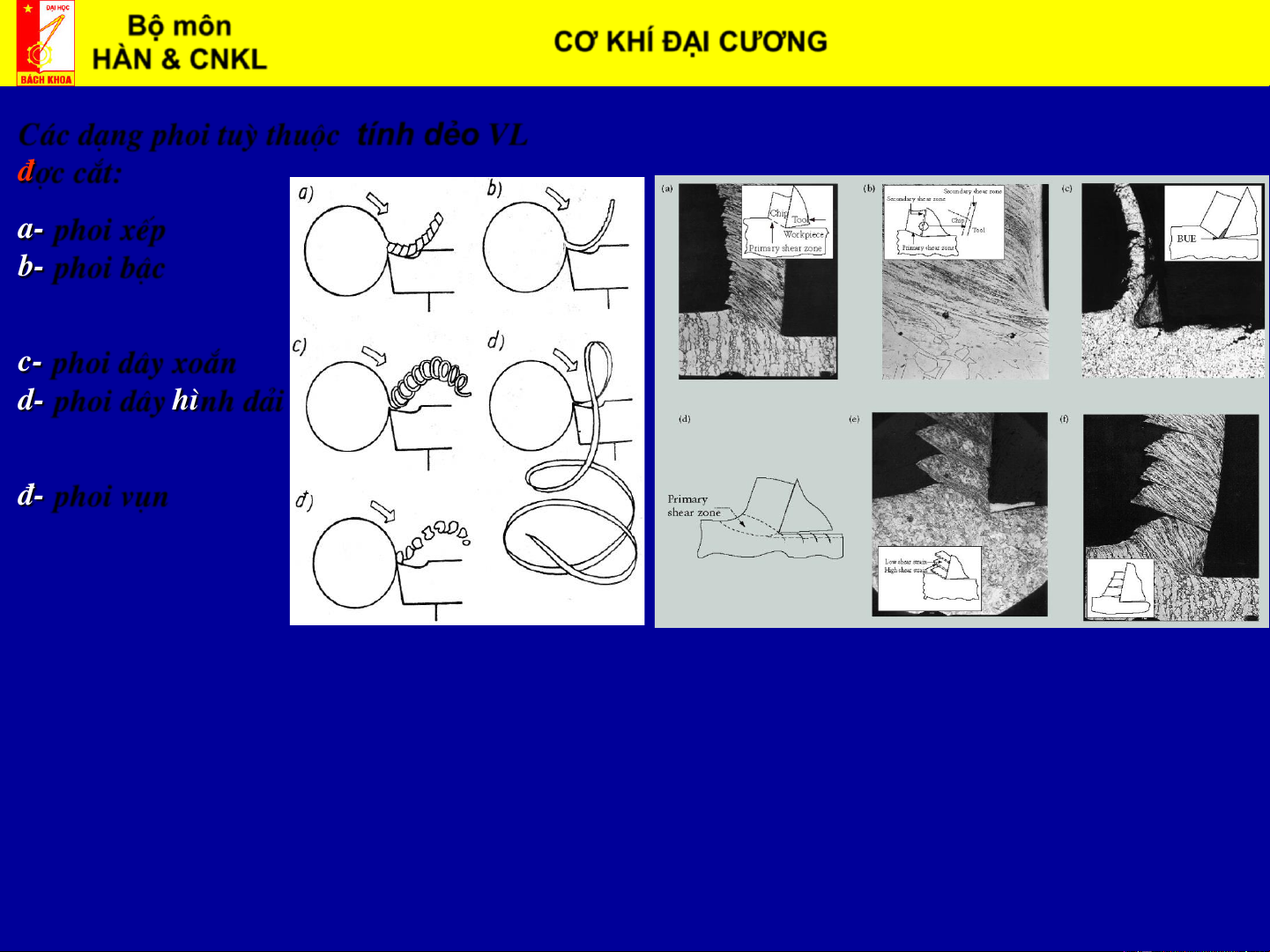 - Gãc n©ng : ¶nh hëng ®Õn hướng cuộn phoi và tho¸t phoi Bộ môn CƠ KHÍ ĐẠI CƯƠNG Biên soạn: HÀN & CNKL ThS. Vũ Đình Toại