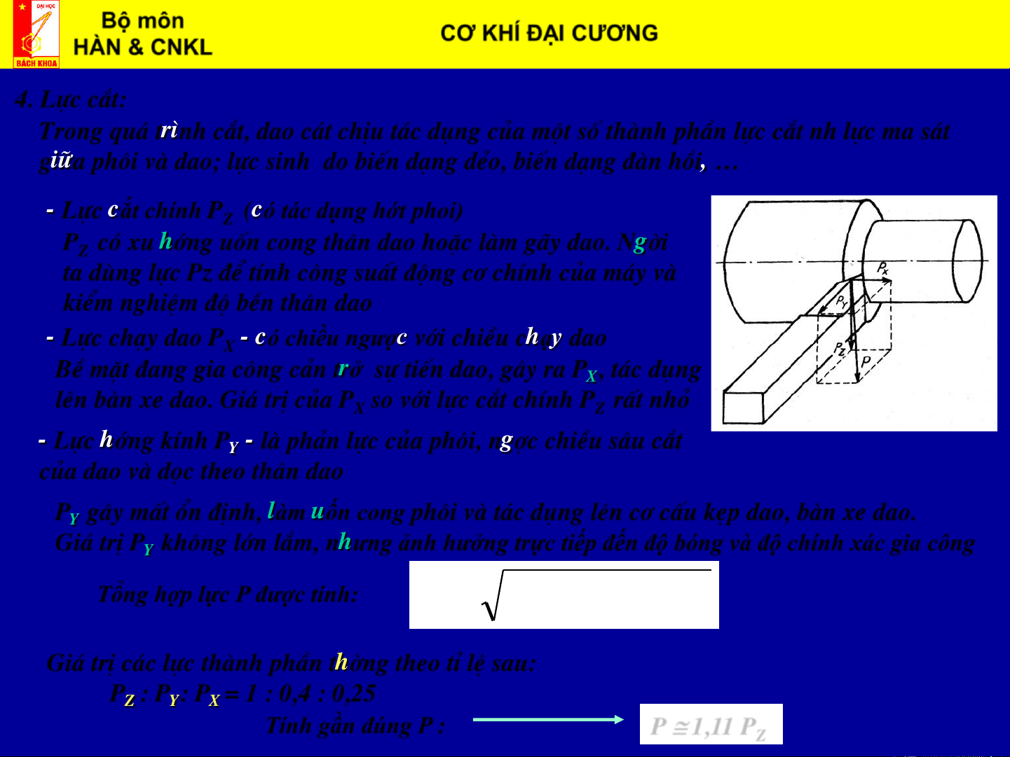 - Lùc cắt chính P (có tác dụng hớt phoi) Z