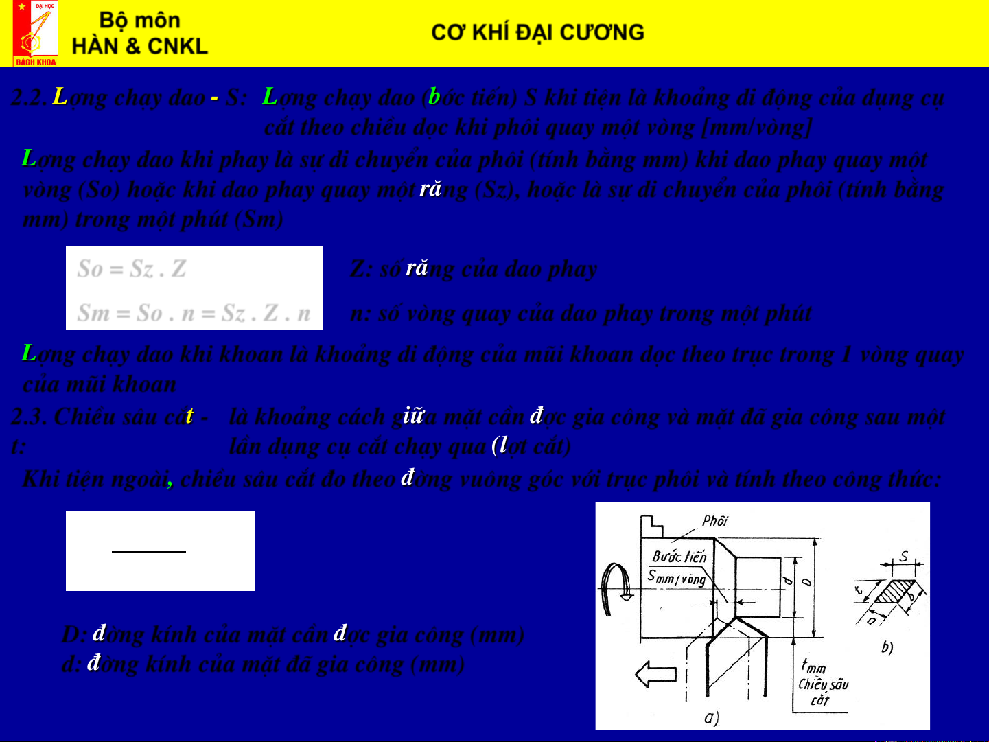 2.3. ChiÒu s©u c¾t - lµ kho¶ng c¸ch gi÷a mÆt cÇn ®îc gia c«ng vµ mÆt ®· gia c«ng sau mét t: