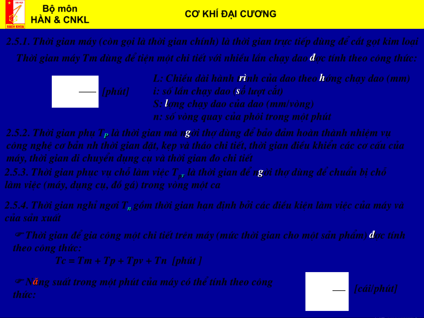 N¨ng suÊt trong mét phót cña m¸y cã thÓ tÝnh theo c«ng 1 = [c¸i/phót] thøc: N Tc Bộ môn CƠ KHÍ ĐẠI CƯƠNG Biên soạn: HÀN & CNKL ThS. Vũ Đình Toại