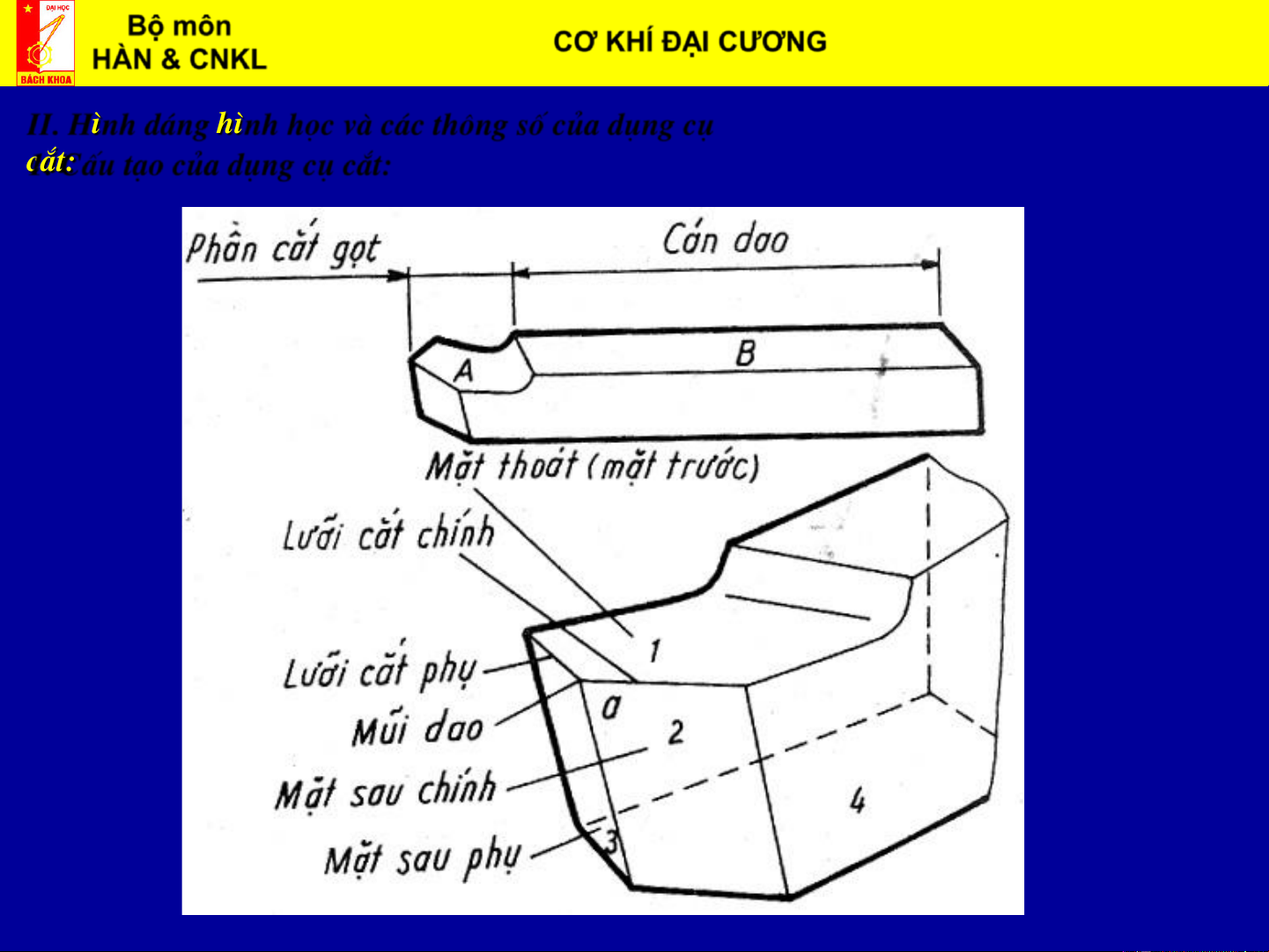 II. H×nh d¸ng h×nh häc vµ c¸c th«ng sè cña dông cô c¾t 1. :
