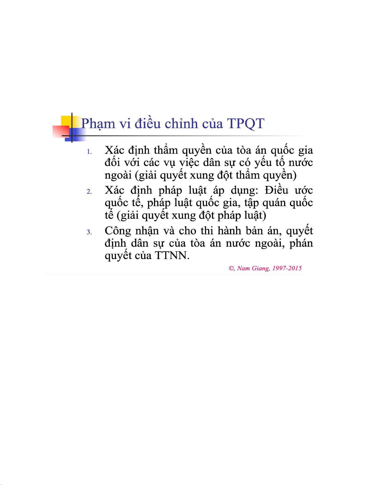 - Phạm vi của tố tụng dân sự quốc tế: Các vụ án, vụ việc dân sự có yếu tố nước ngoài