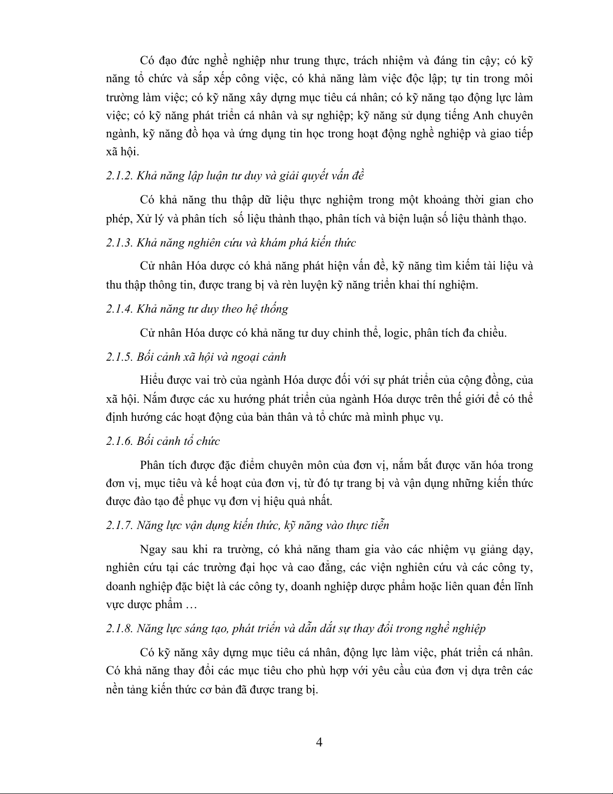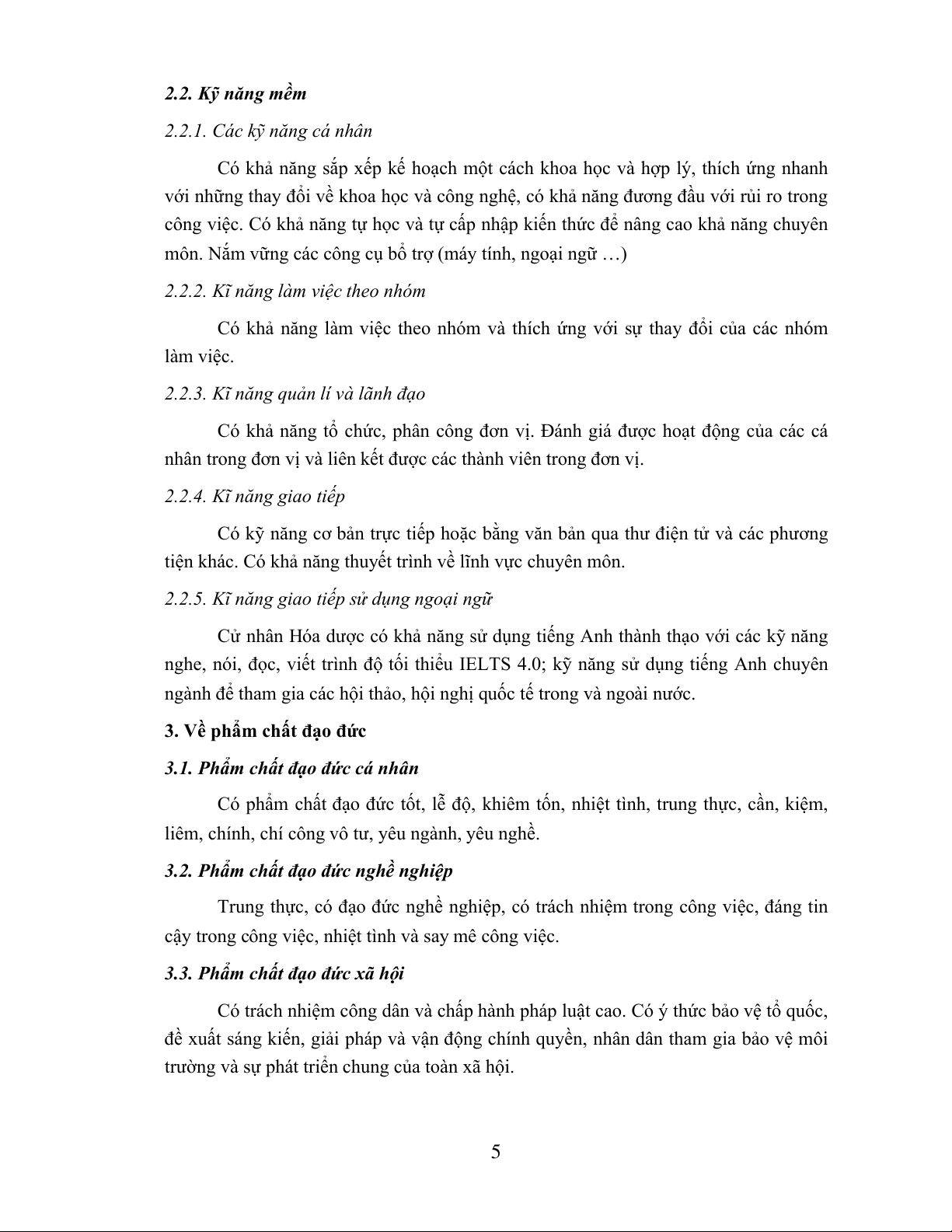 Đào tạo cử nhân Hoá dược với những năng lực và phẩm chất chủ yếu sau đây: