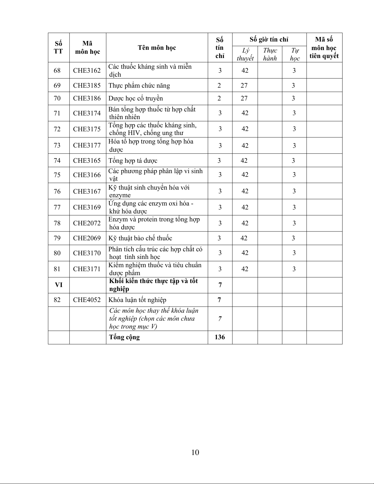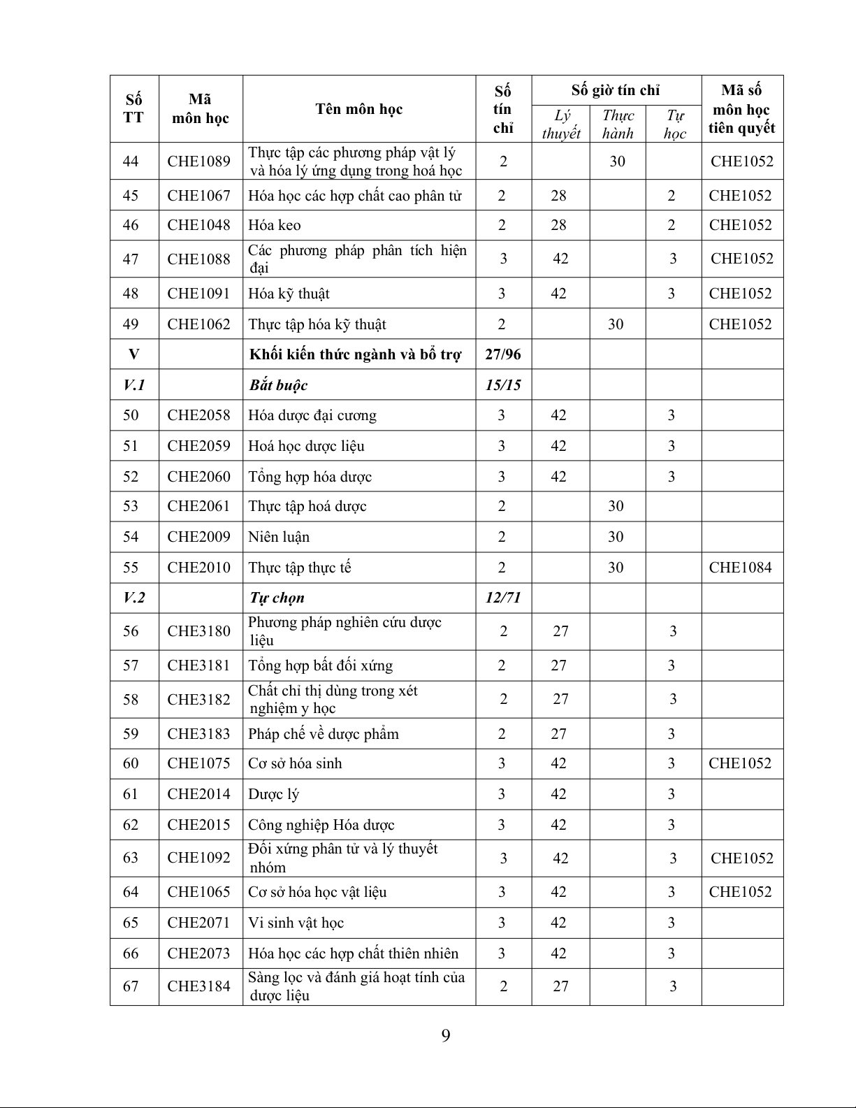 Các phương pháp phân tích hiện 47 CHE1088 3 42 3 CHE1052 đại 48 CHE1091 Hóa kỹ thuật 3 42 3 CHE1052 49