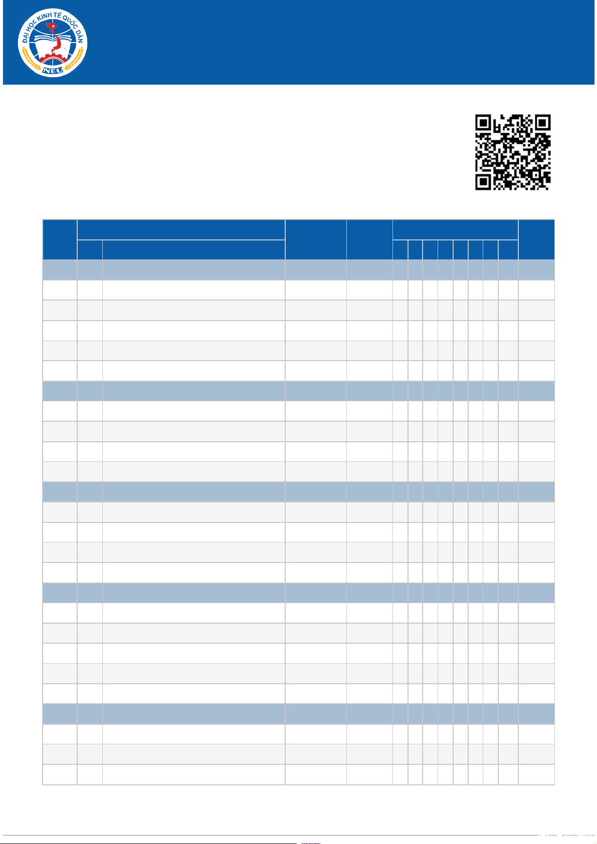 Nội dung và kế hoạch giảng dạy Mã học phần Số tín Bố trí các học kỳ Học chỉ kỳ STT Tên học phần 1 2 3 4 5 6 7 8