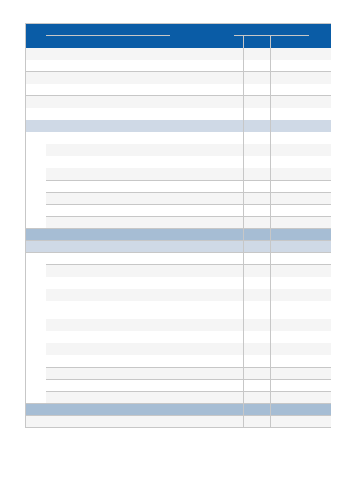 STT Nội dung và kế hoạch giảng dạy Mã học phần Số tín Bố trí các học kỳ Học chỉ kỳ STT Tên học phần 1 2 3 4 5 6 7 8 22 4