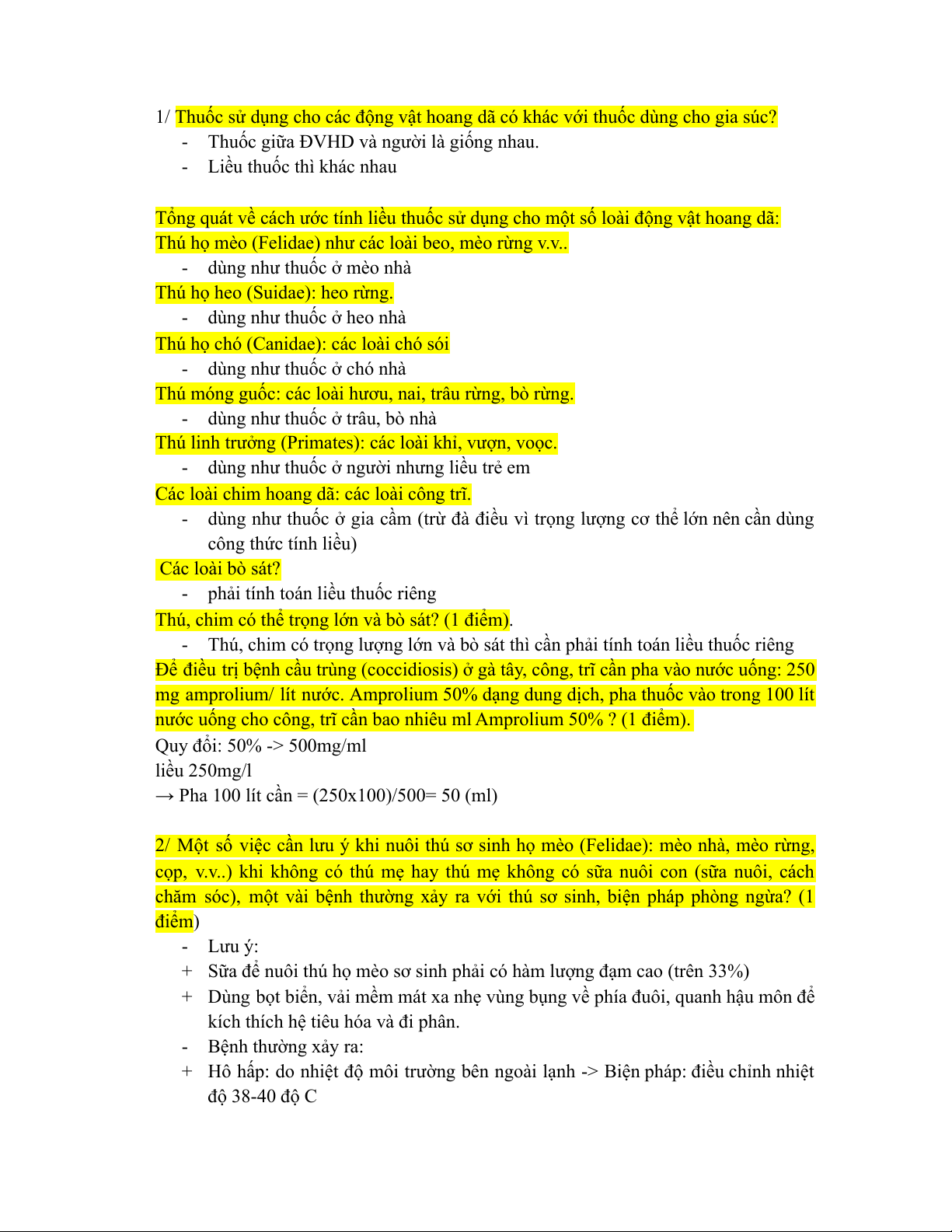 chăm sóc), một vài bệnh thường xảy ra với thú sơ sinh, biện pháp phòng ngừa? (1 điểm) - Lưu ý: