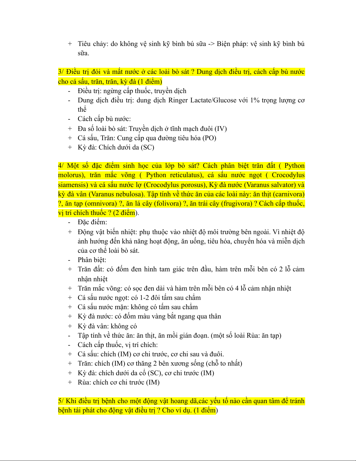 cho cá sấu, trăn, trăn, kỳ đà (1 điểm)