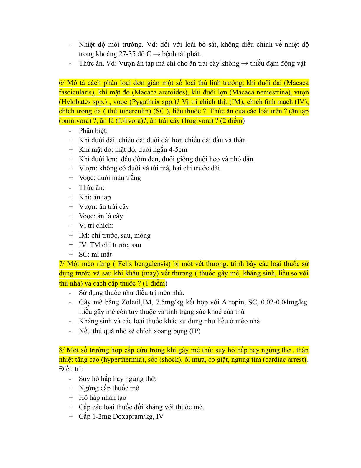 + Vượn: không có đuôi và túi má, hai chi trước dài + Voọc: đuôi màu trắng - Thức ăn: + Khỉ: ăn tạp + Vượn: ăn trái cây + Voọc: ăn lá cây - Vị trí chích: + IM: chi trước, sau, mông + IV: TM chi trước, sau + SC: mí mắt