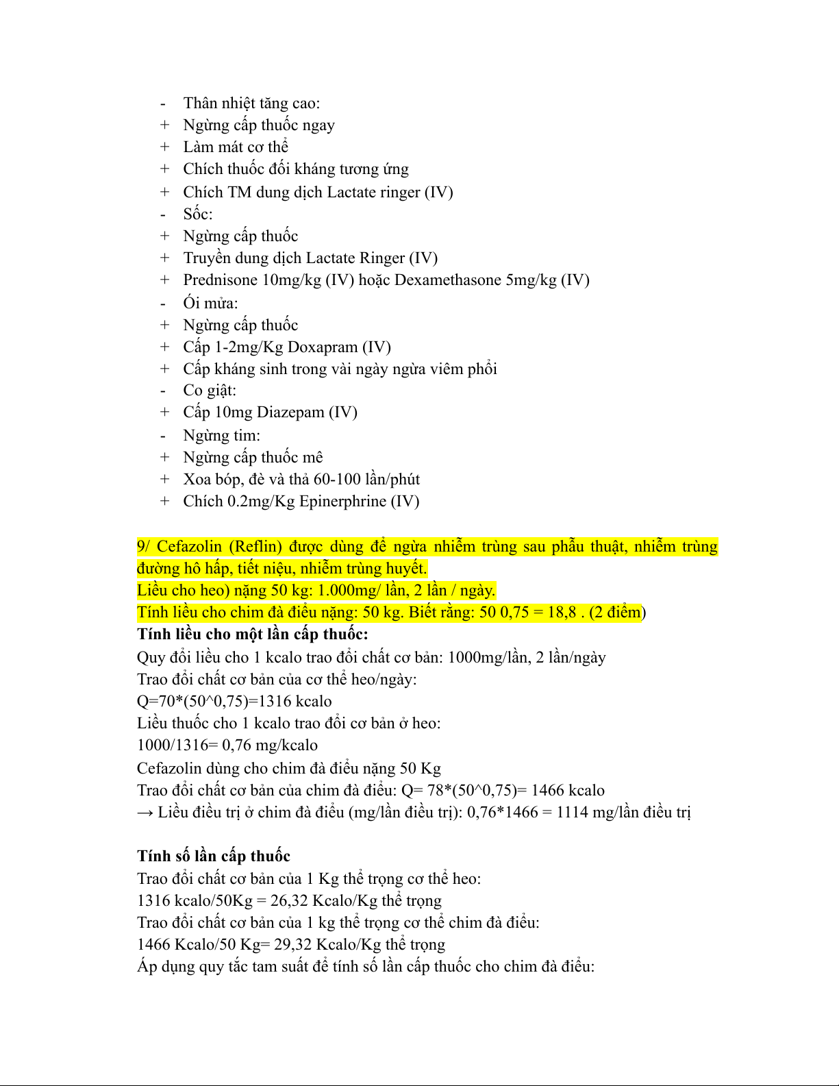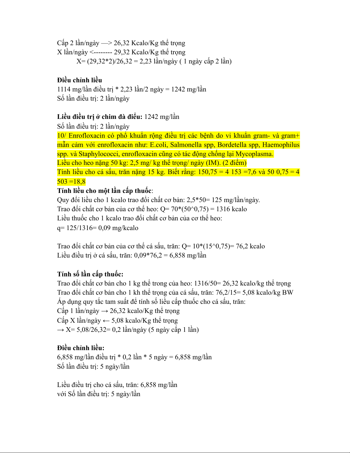 Tính liều cho chim đà điểu nặng: 50 kg. Biết rằng: 50 0,75 = 18,8 . (2 điểm)