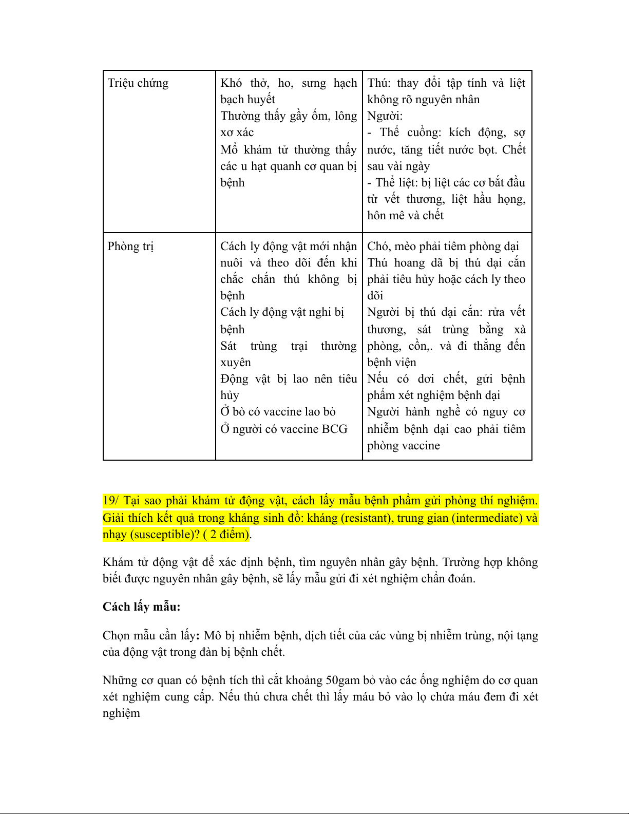 19/ Tại sao phải khám tử động vật, cách lấy mẫu bệnh phẩm gửi phòng thí nghiệm.