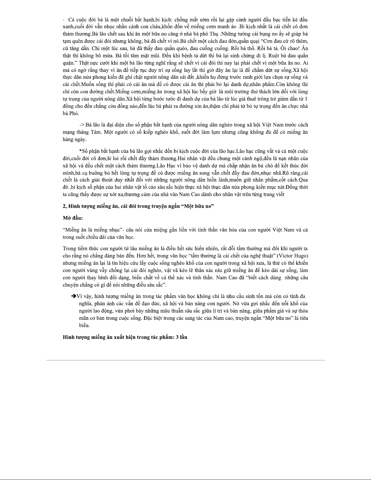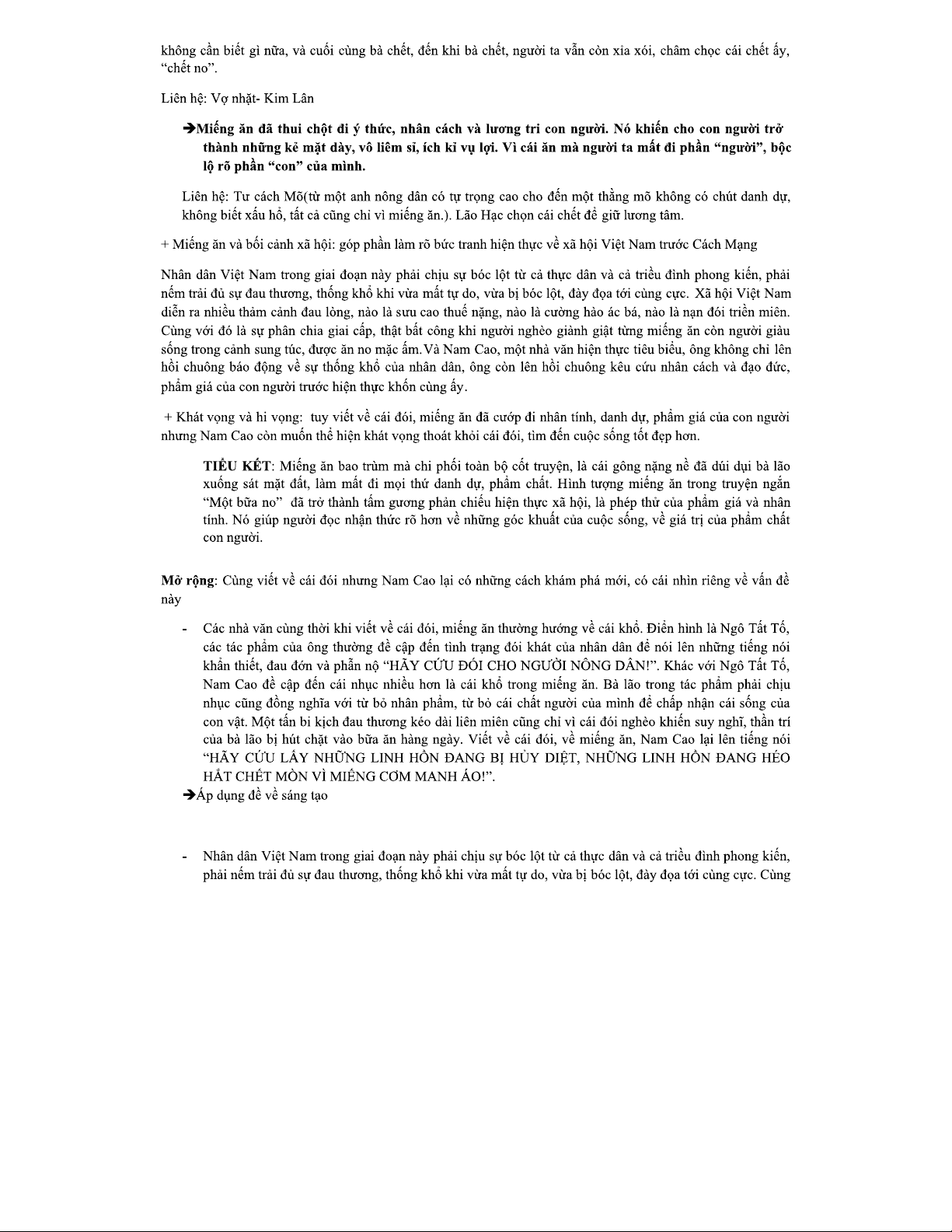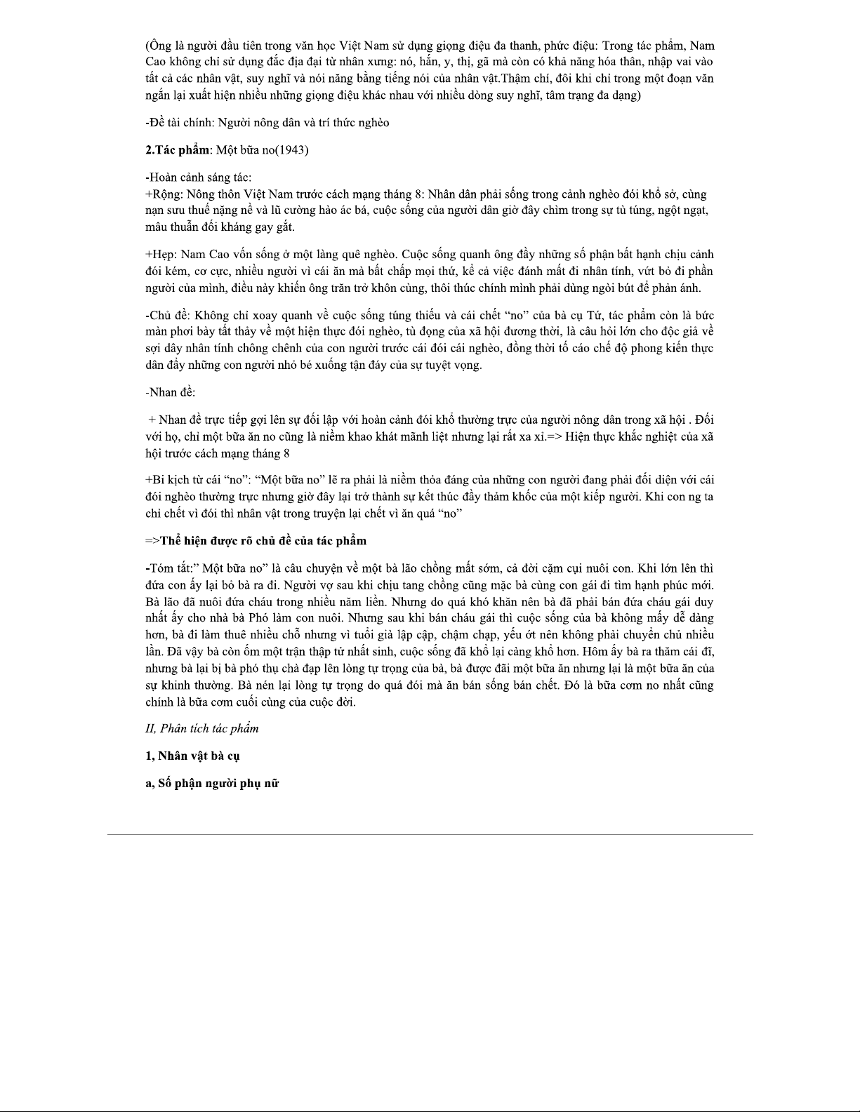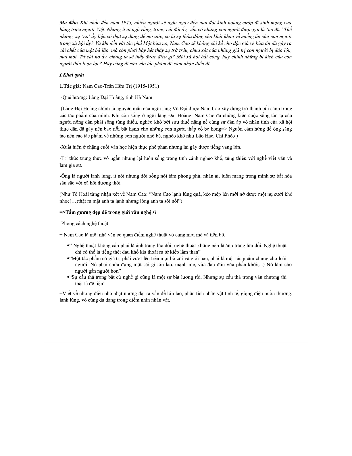 Chương trình phân tích tác phẩm "Một bữa no" của Nam Cao (1943)