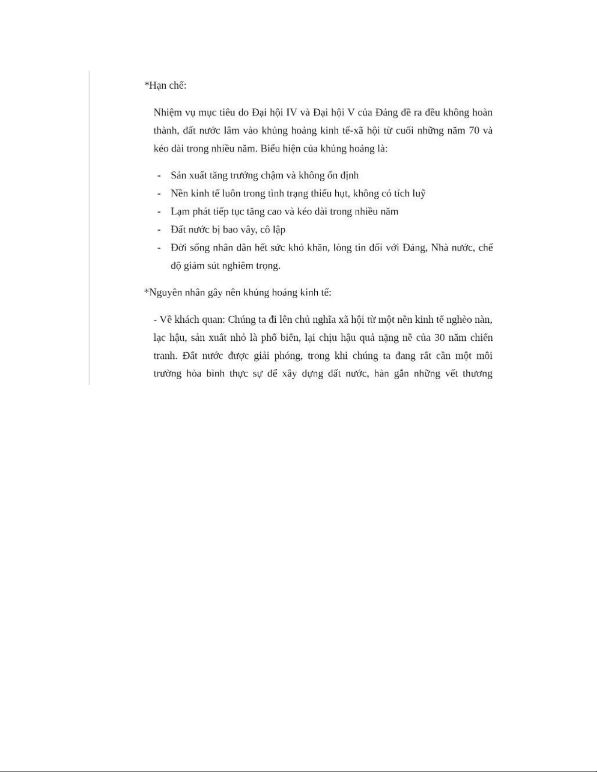 thành tựu, hạn chế, chỉ rõ những sai lầm, khuyết điểm của Đảng trong thời kỳ 1975- 1986