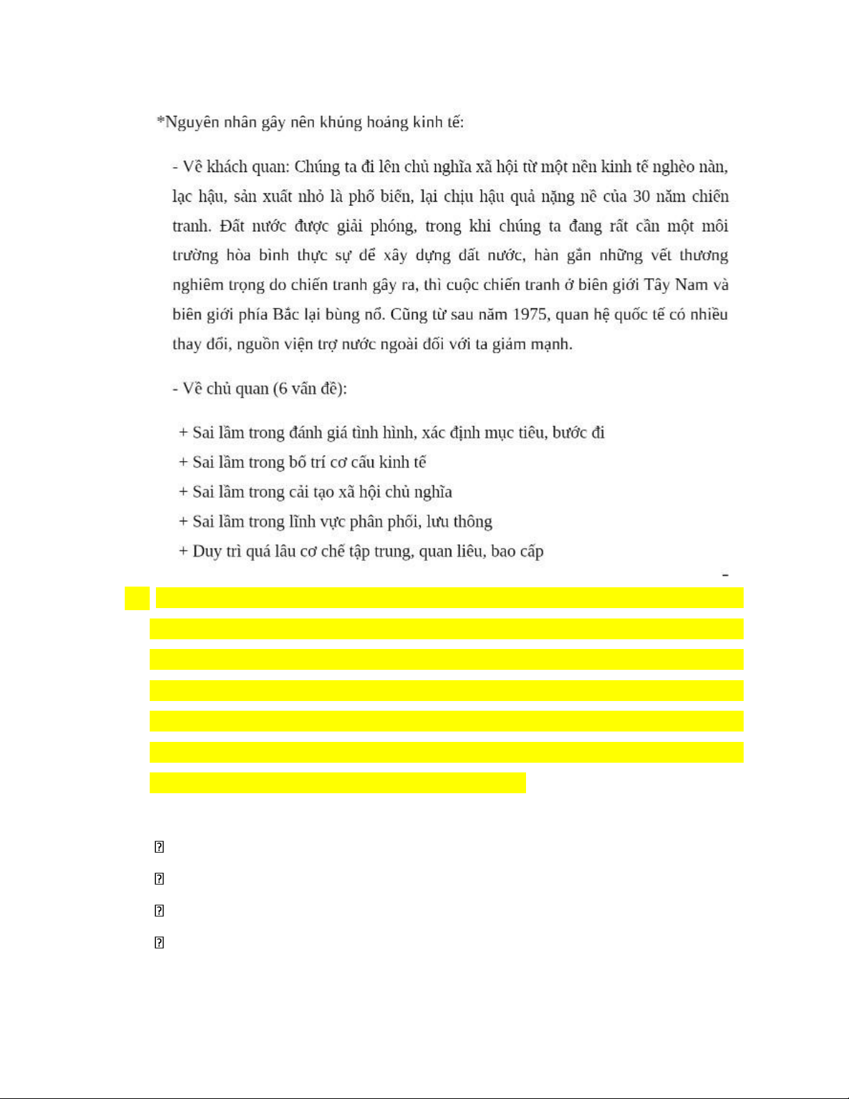 cho được những vấn đề cấp bách về phân phối, lưu thông) Đại hội VI nhấn mạnh: