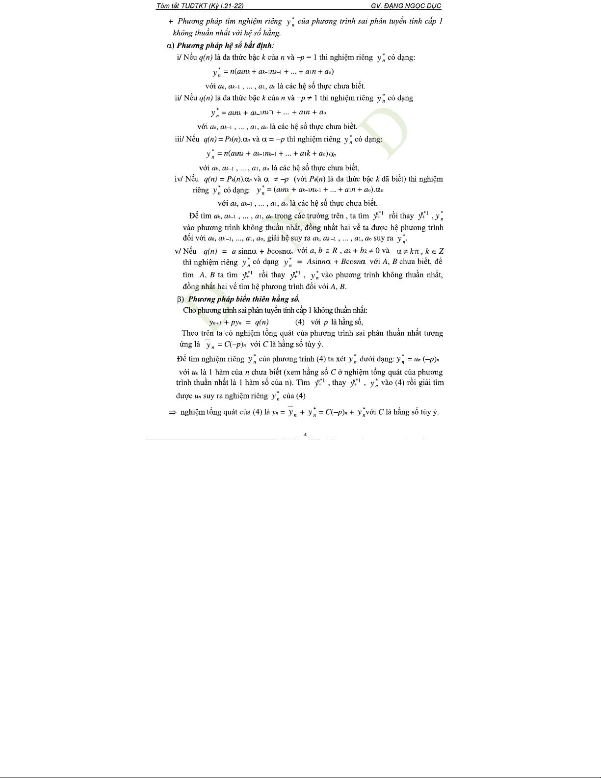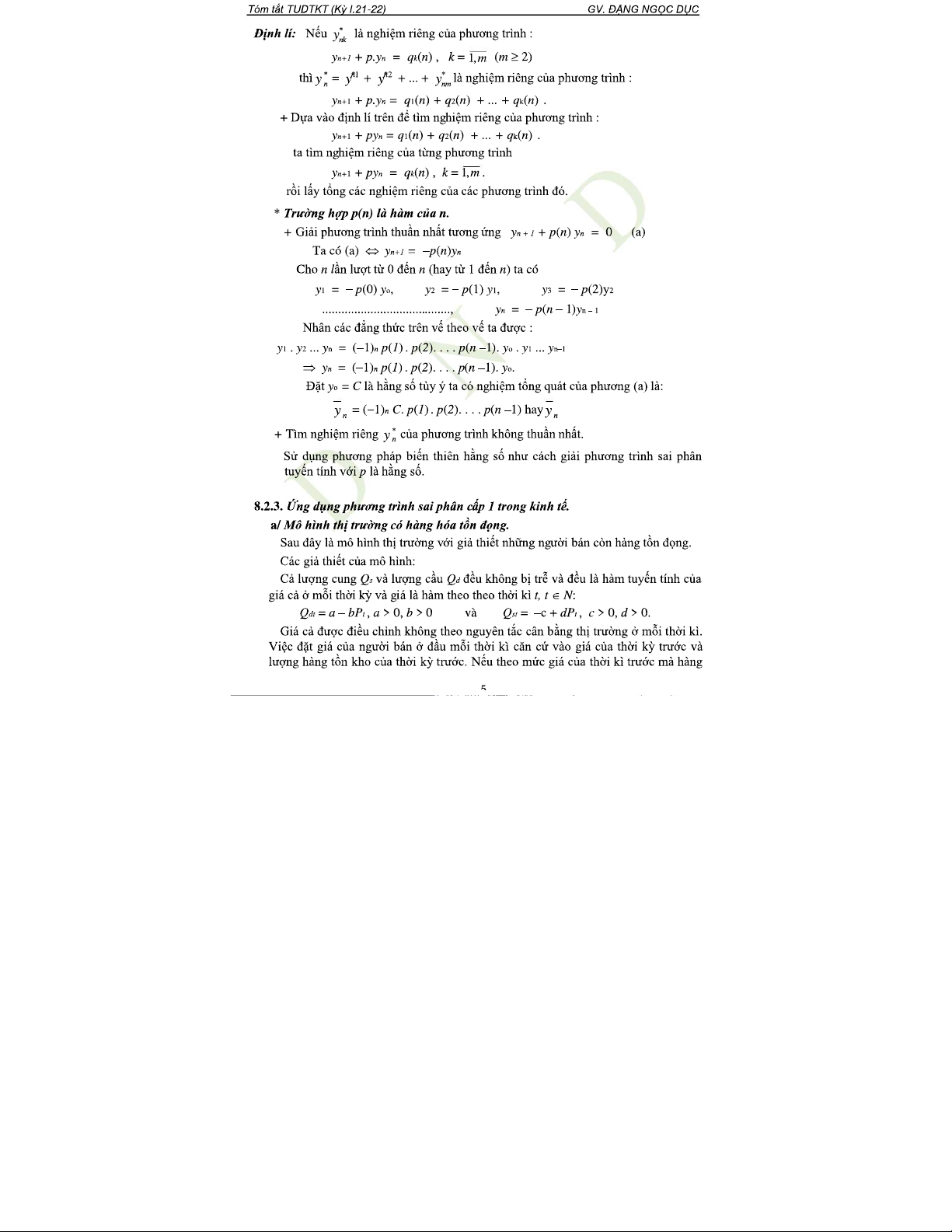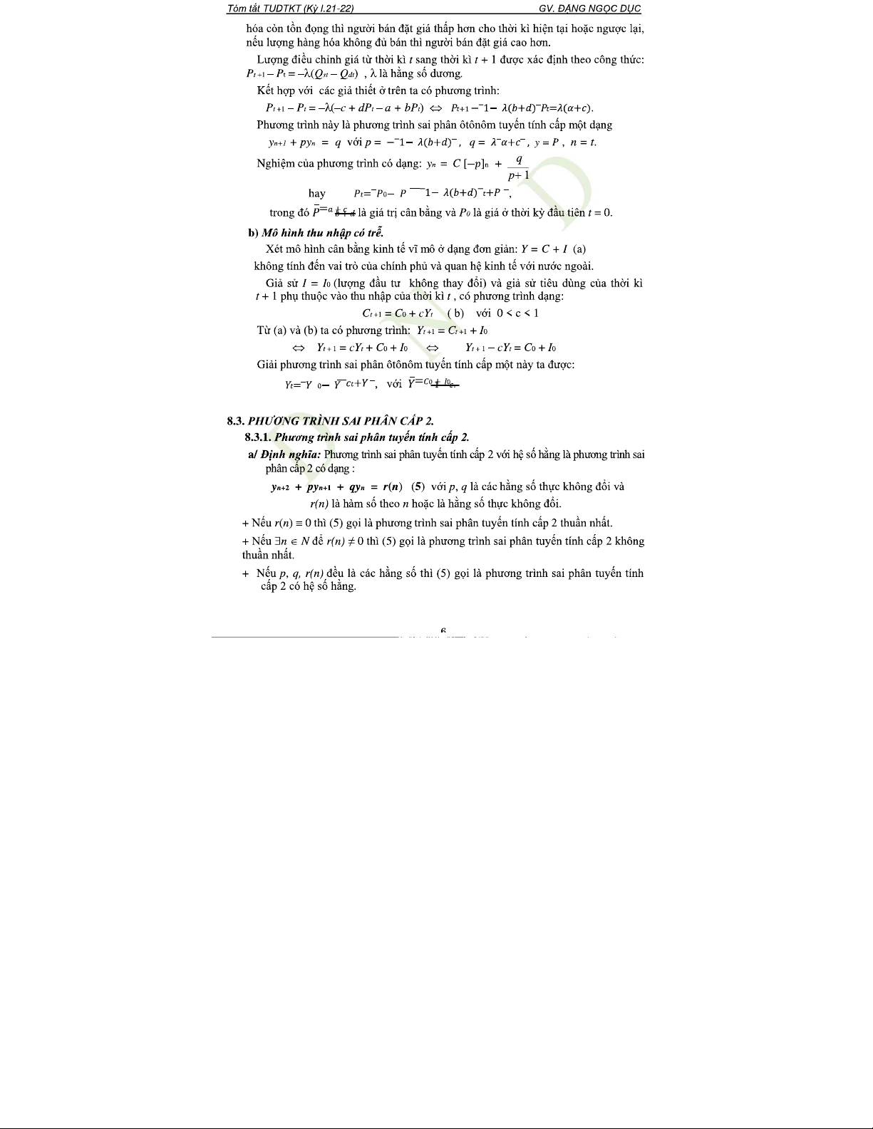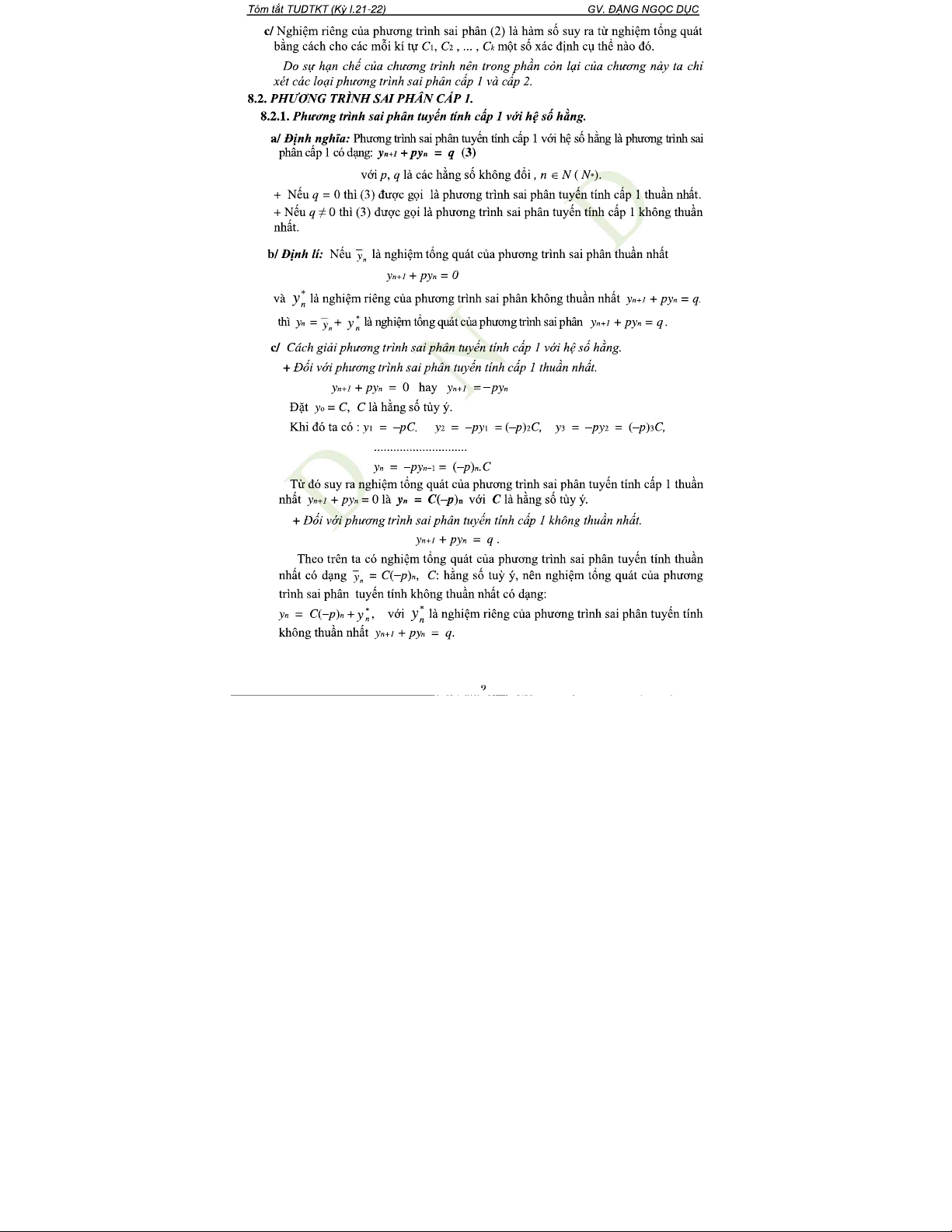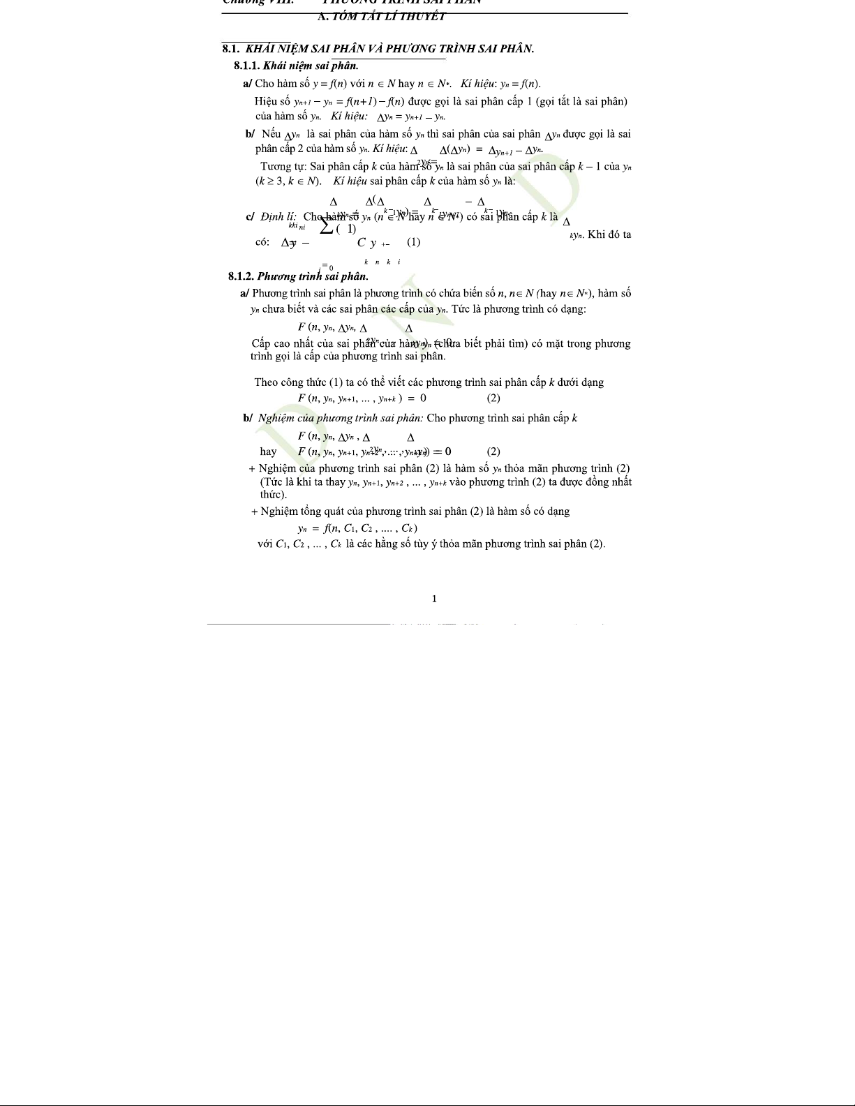 Chương VIII: Phương Trình Sai Phân Cấp 1 và Cấp 2 trong Toán Học