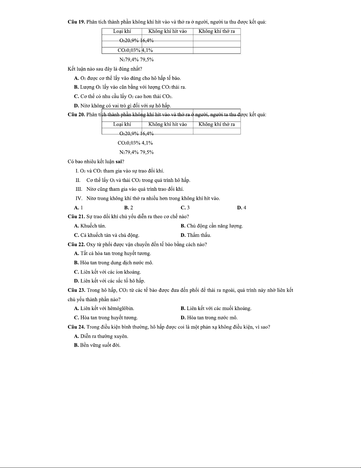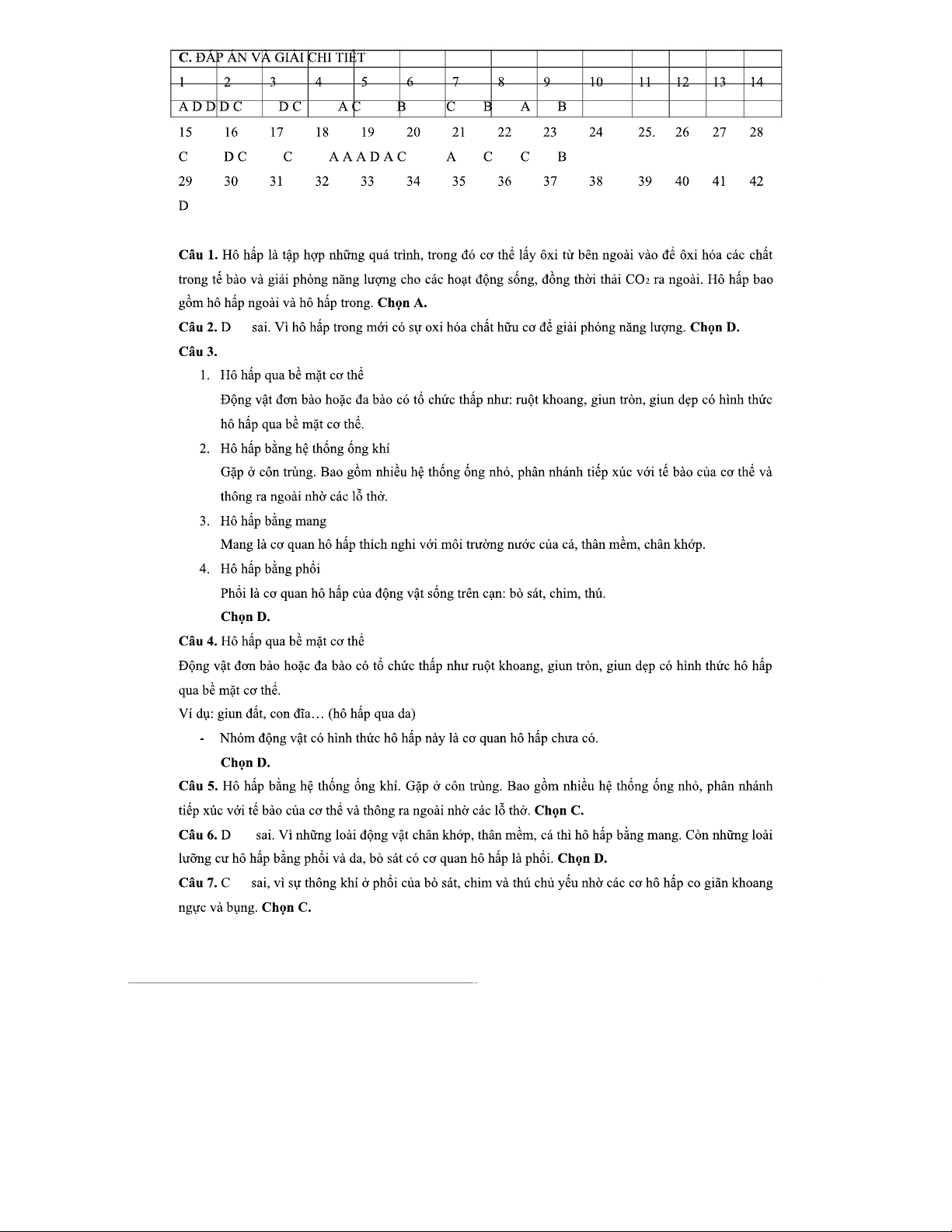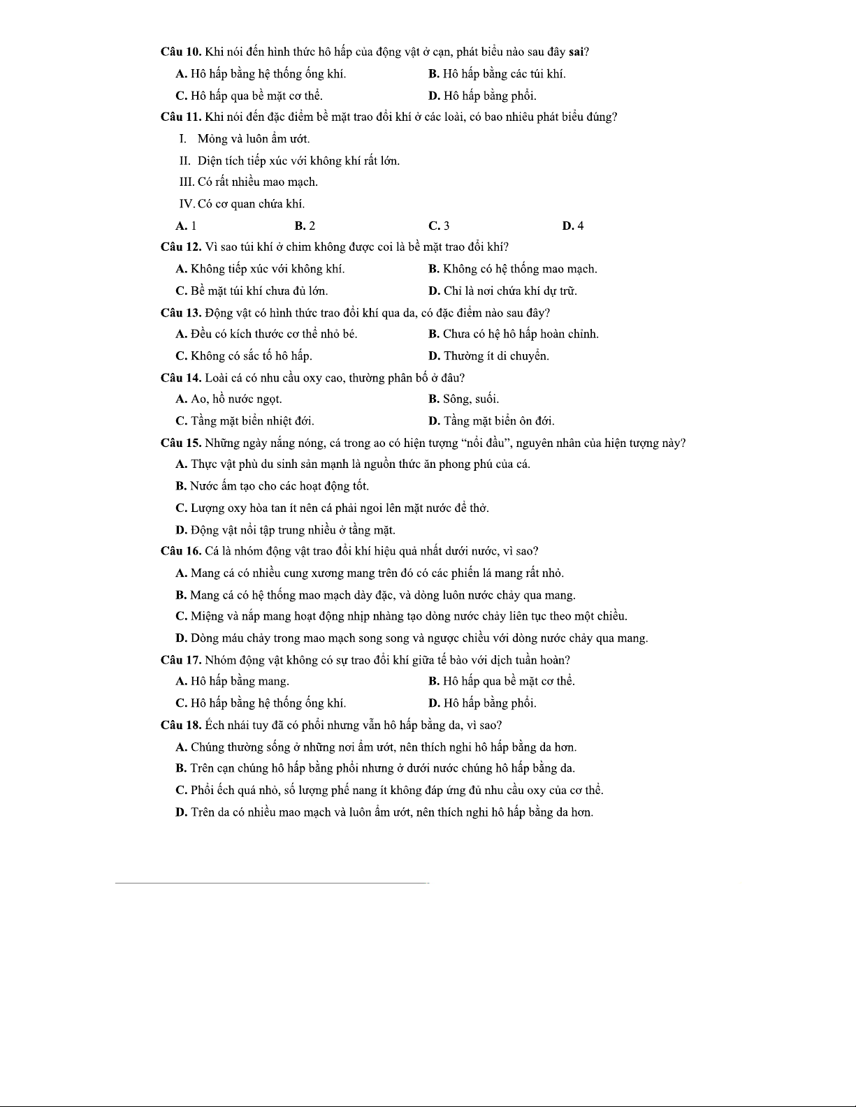 Chuyên đề 06: Hô Hấp Ở Động Vật - Kiến Thức Cơ Bản và Trắc Nghiệm