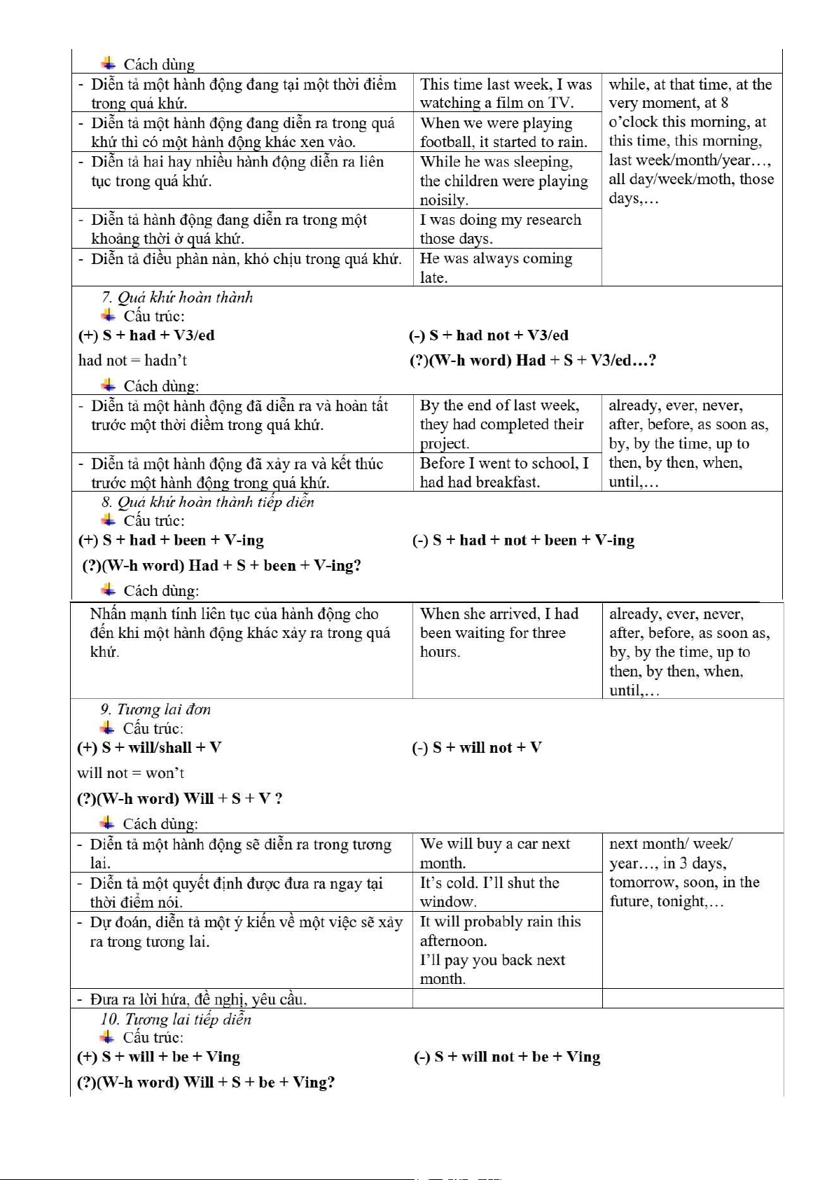 khứ) e. S + V2/ed + after/ as soon as + S + had + V3/ed