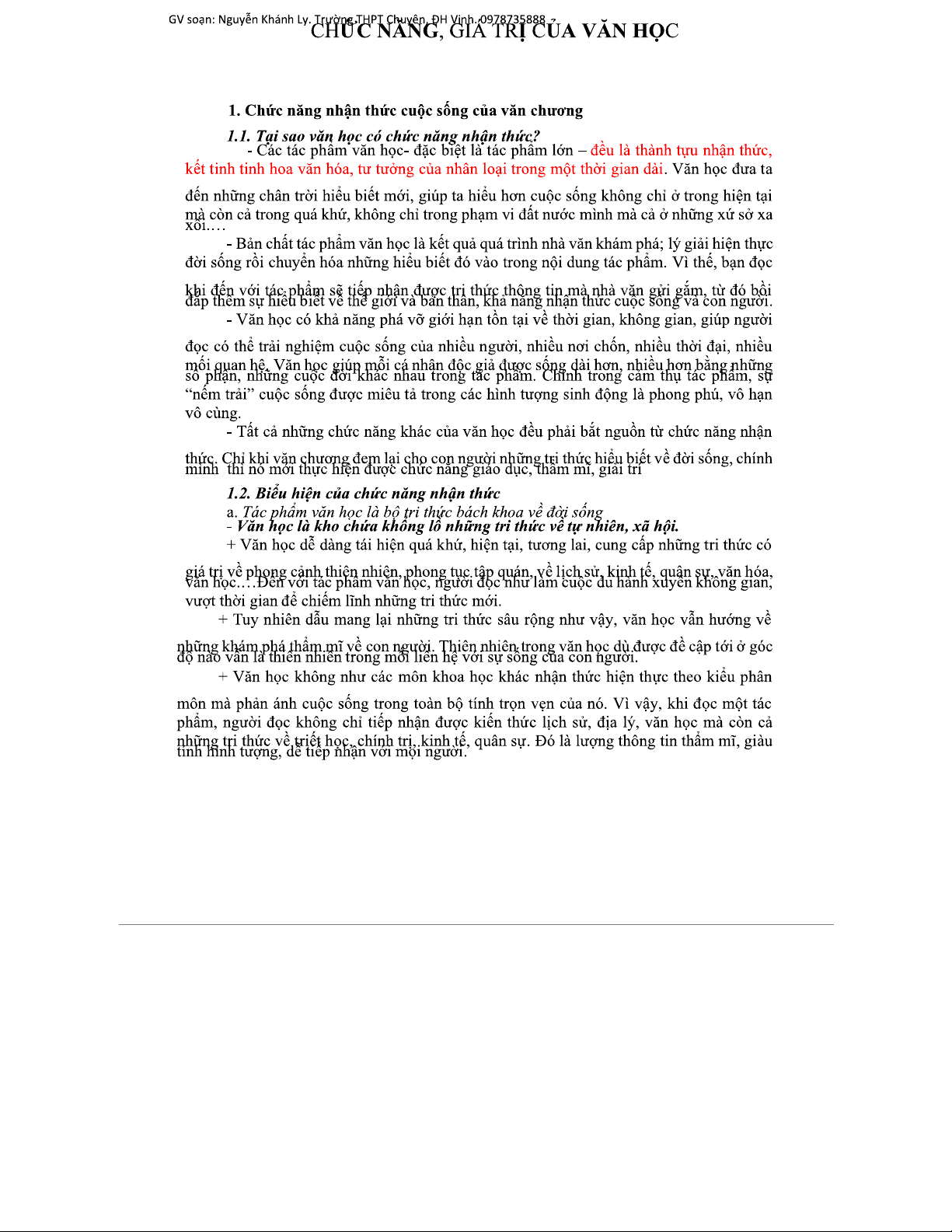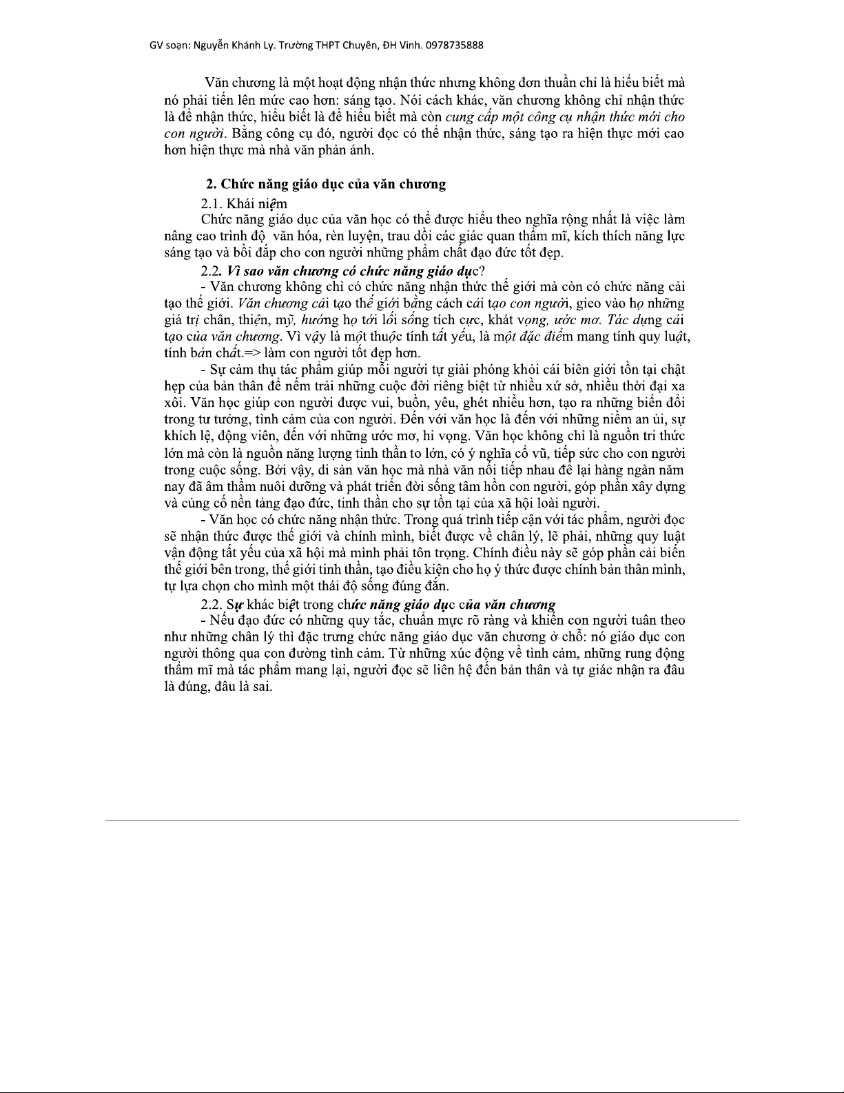 Chuyên đề 2: Giá trị & Chức năng của Văn học trong Cuộc sống