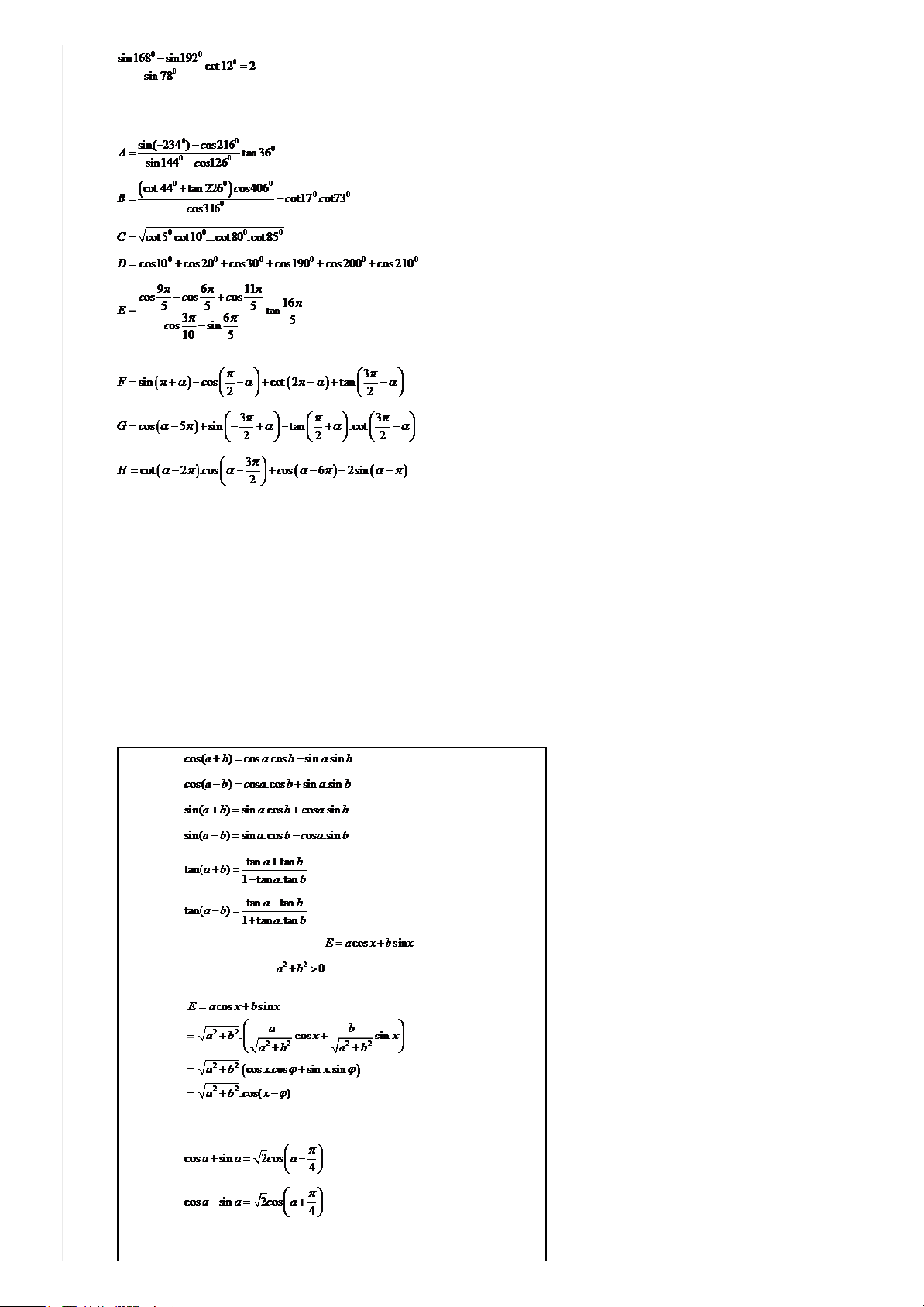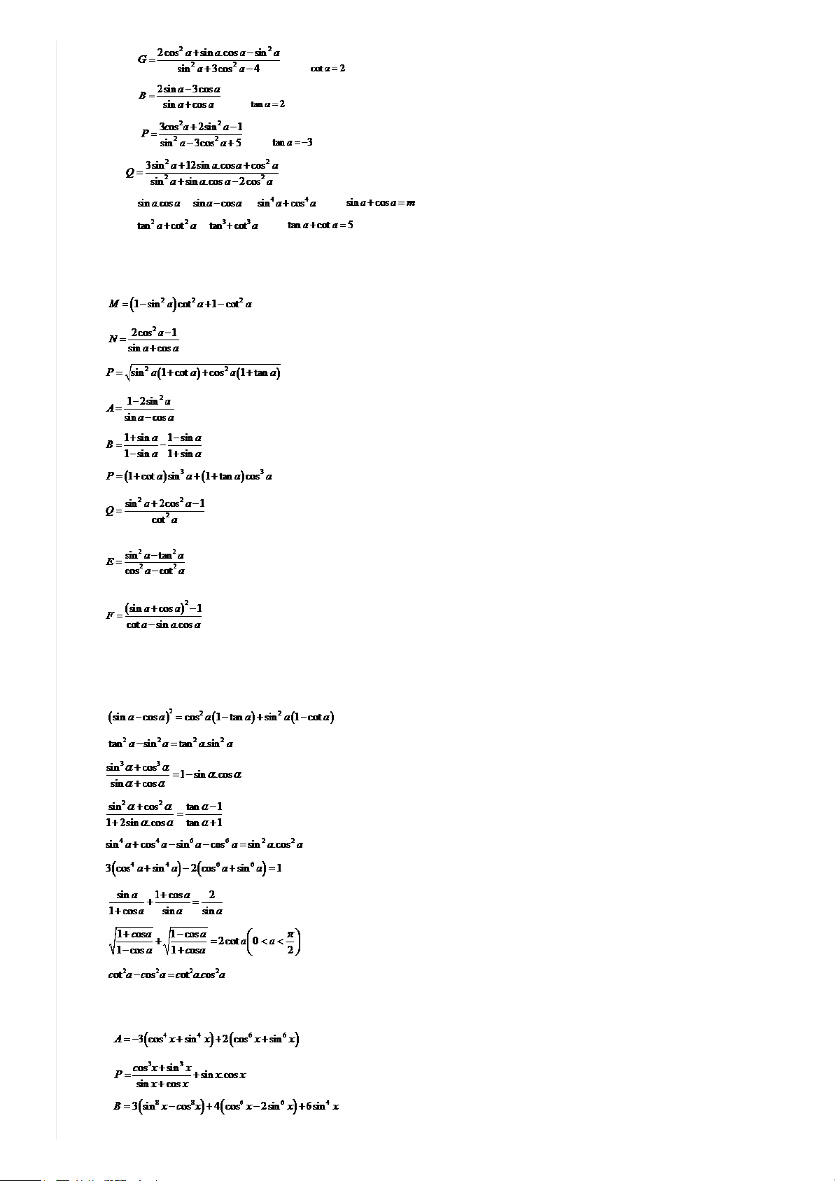 Công thức lượng giác tổng hợp toàn tập Toán Học 7) c.Tính biết 8) d.Tính biết 9) e. Tính biết 10) tính 11) a.Tính , , biết b.Tính , biết Đ N GI N BI U TH C 12) . 13) . 14) 15) 16) 17) 18) 19) 20)
