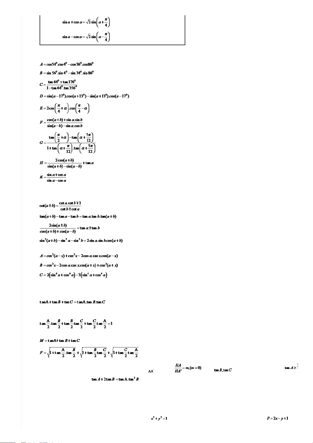 Công thức lượng giác tổng hợp toàn tập Toán Học 42) Tính giá tr bi u th c : 43) 44) 45) 46) 47) Đ n gi n bi u th c sau : 48) 49) 50) V N Đ 3 : CÔNG TH C CỘNG KI N TH C C B N