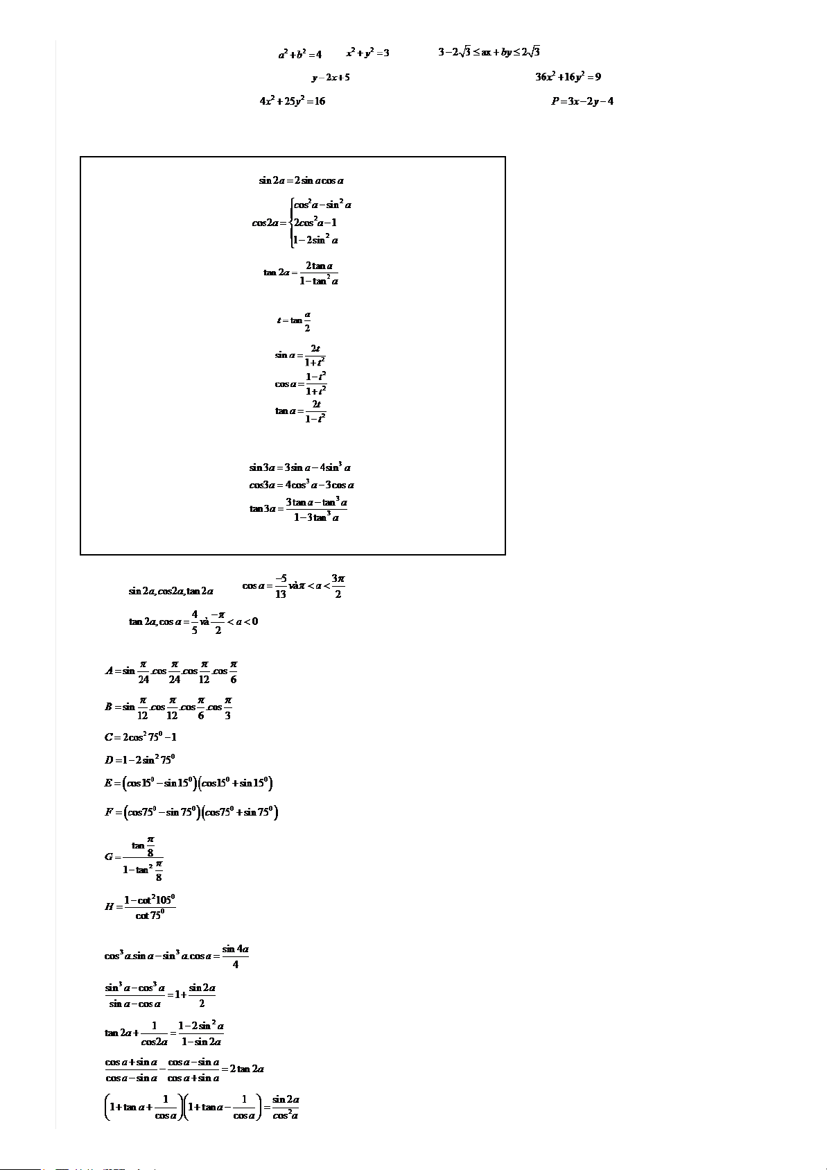 . Tìm giá trị lớn nhất và nhỏ nhất của biểu thức : V N Đ 4 : CÔNG TH C NHỂN A.KI N TH C C B N Công th c nhơn đôi Hệ quả Đặt , ta có : Công th c nhơn 3 81) Tính biết 82) Tính Tính giá tr bi u th c sau: 83) 84) 85) 86) 87) 88) 89) Ch ng minh r ng : 90) 91) 92) 93) 94)