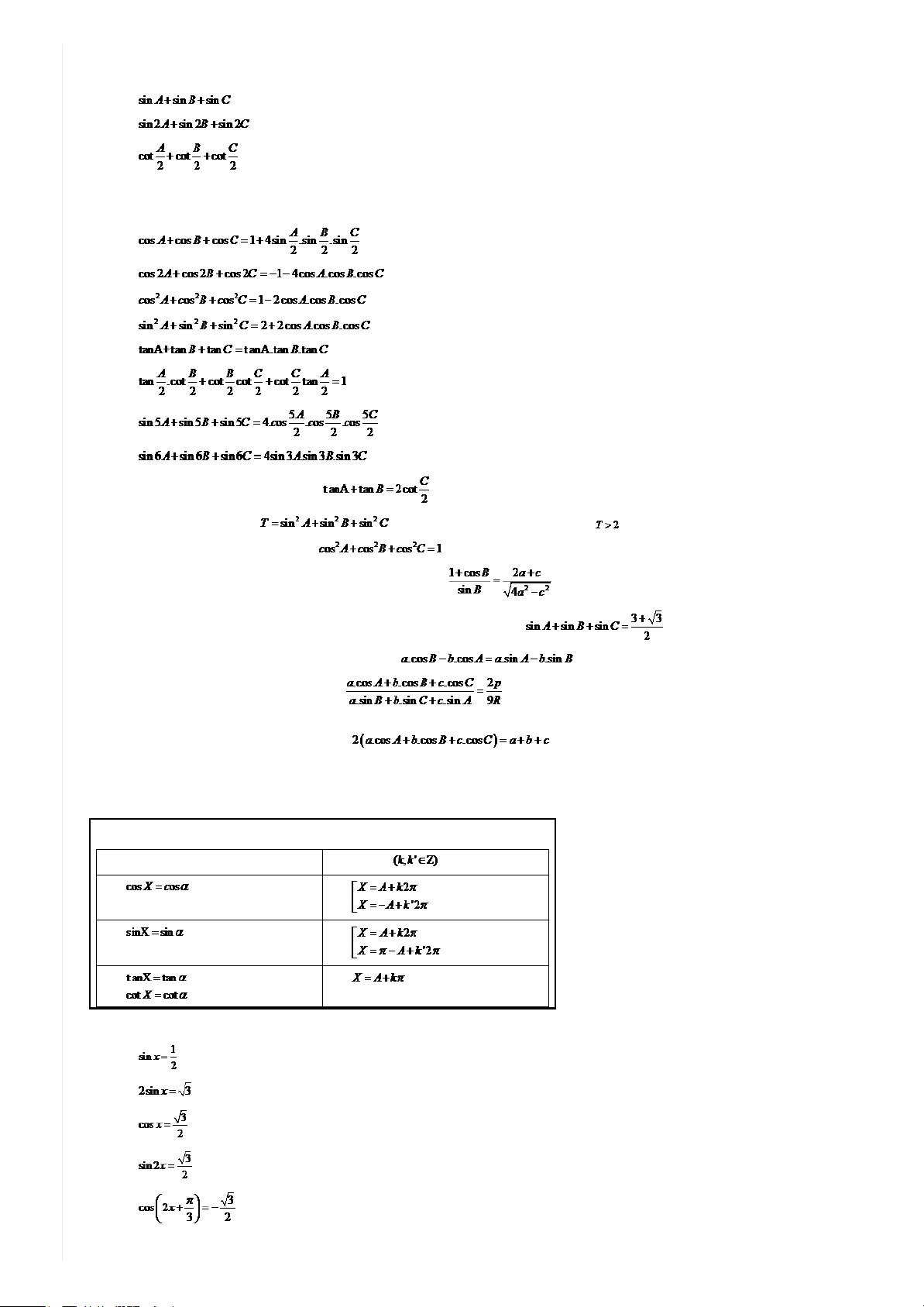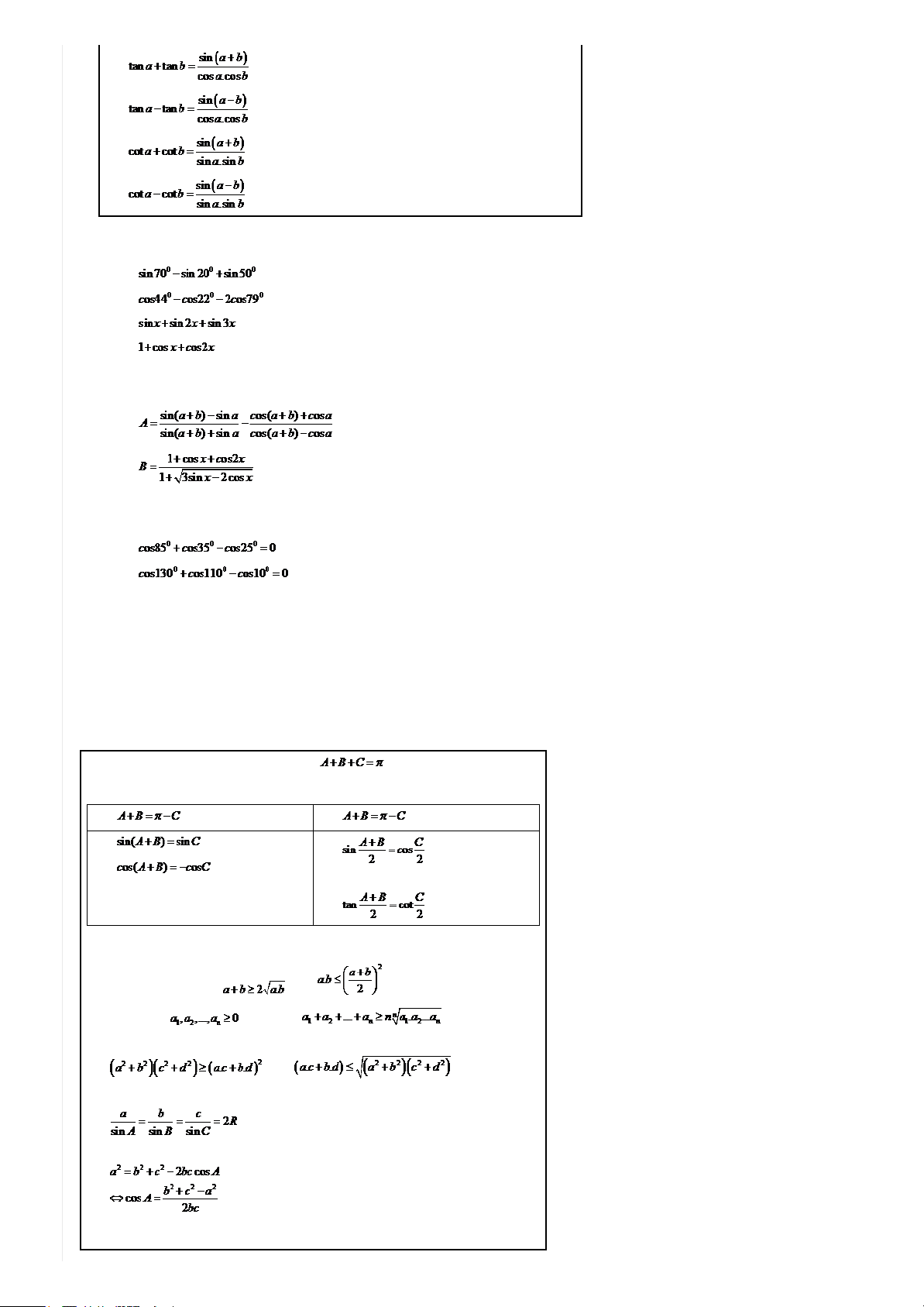 A, B , C là 3 góc trong 1 tam giác , ta có : vậy : (bù) ( phụ) B t đ ng th c côsi Cho a ,b >0 ta luôn có hay Tổng quát : ta luôn có B t đ ng th c BOUNHIACOSKY hay Đ nh lí hƠm s sin Đ nh lí hƠm s cosin