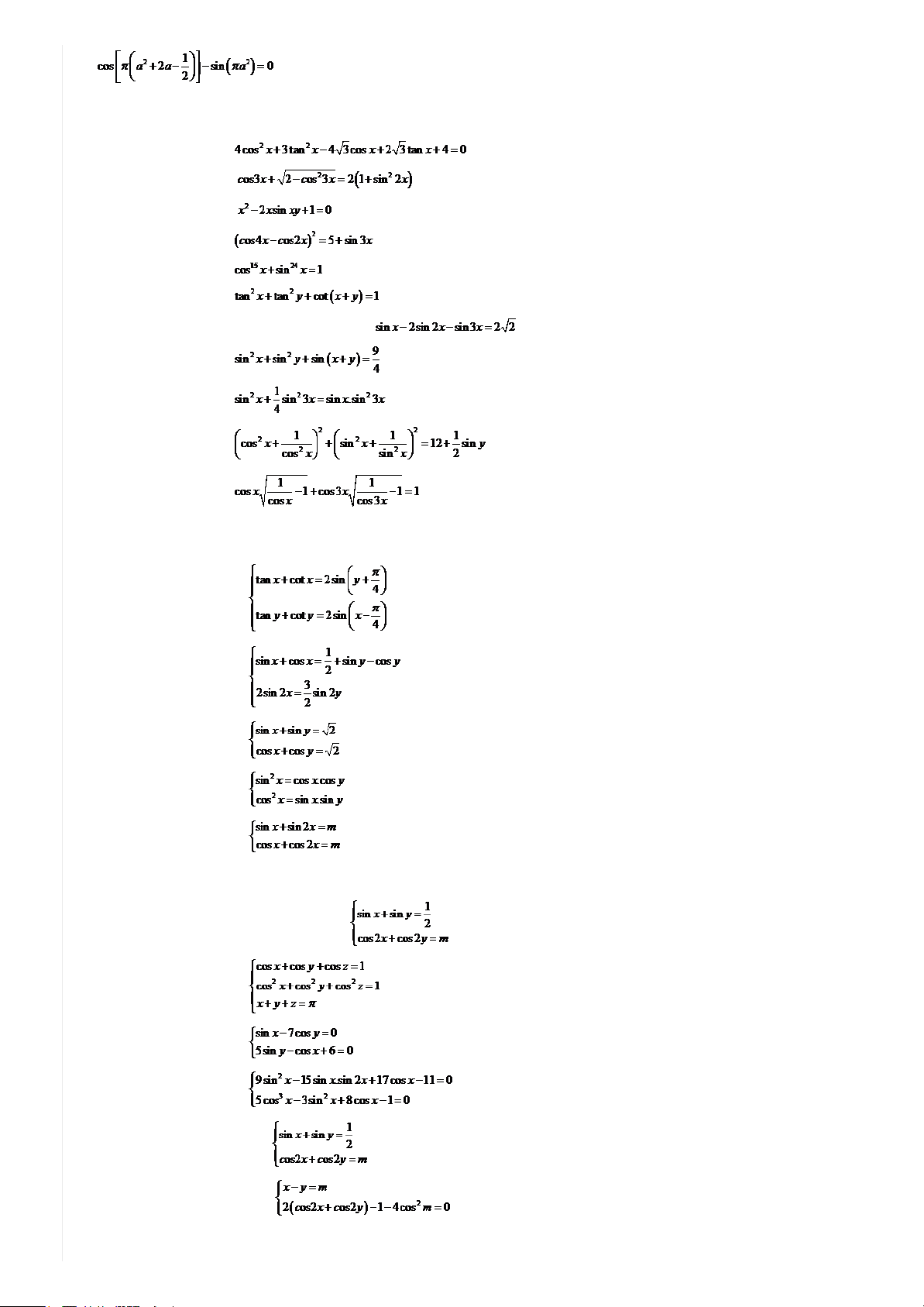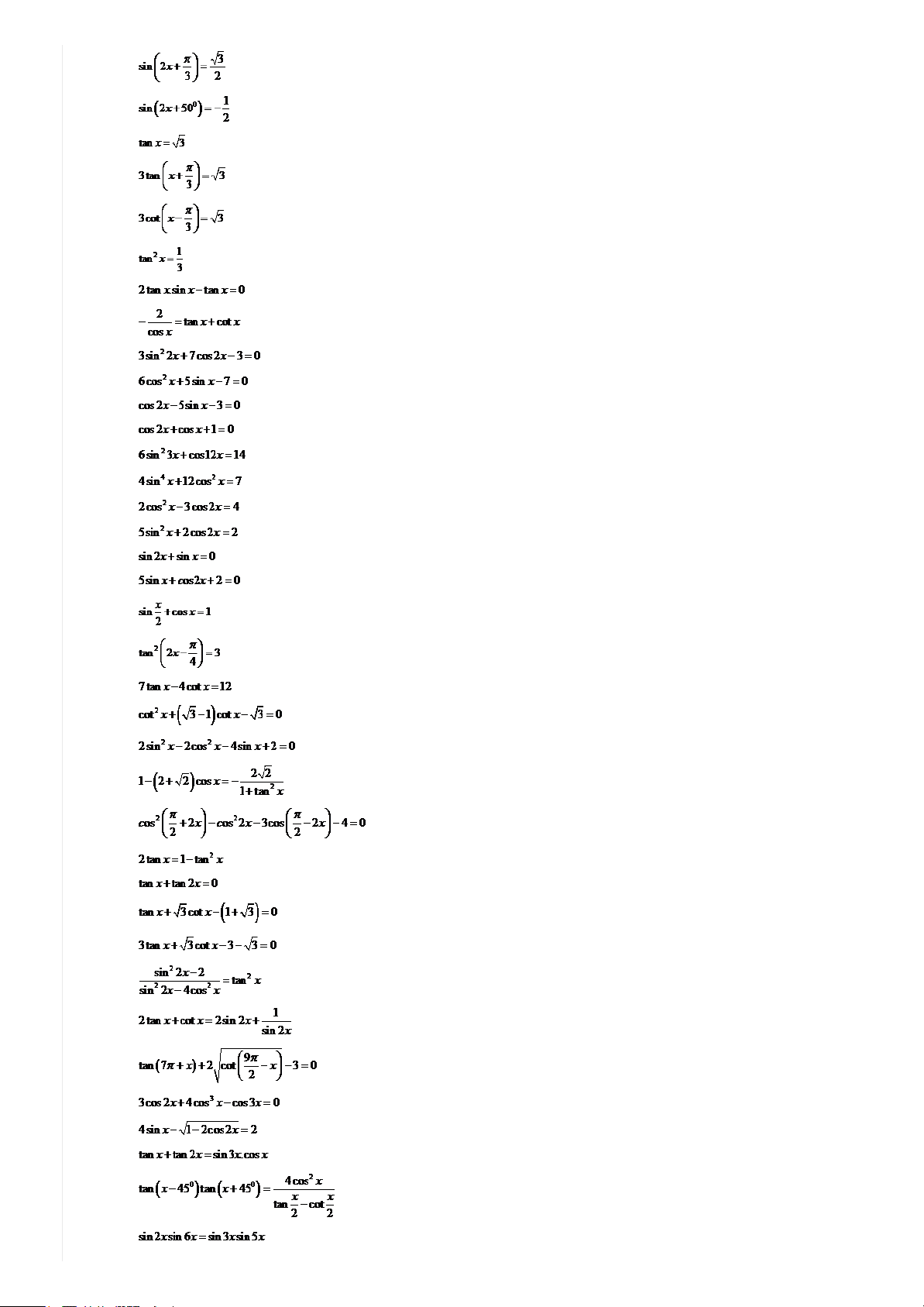 Công thức lượng giác tổng hợp toàn tập Toán Học V N Đ 10 MỘT S PH NG TRỊNH L NG GIÁC KHÔNG MẪU MỰC 287) Giải phương trình : 288) Giải phương trình : 289) Giải phương trình : . 290) Giải phương trình : 291) Giải phương trình : . 292) Giải phương trình : .