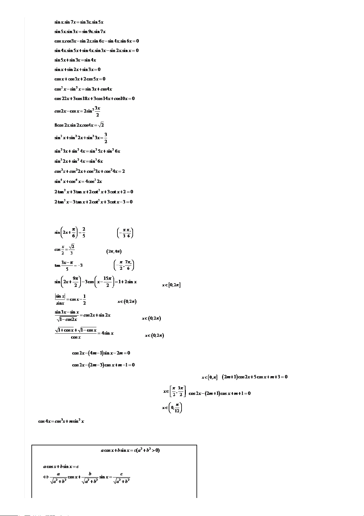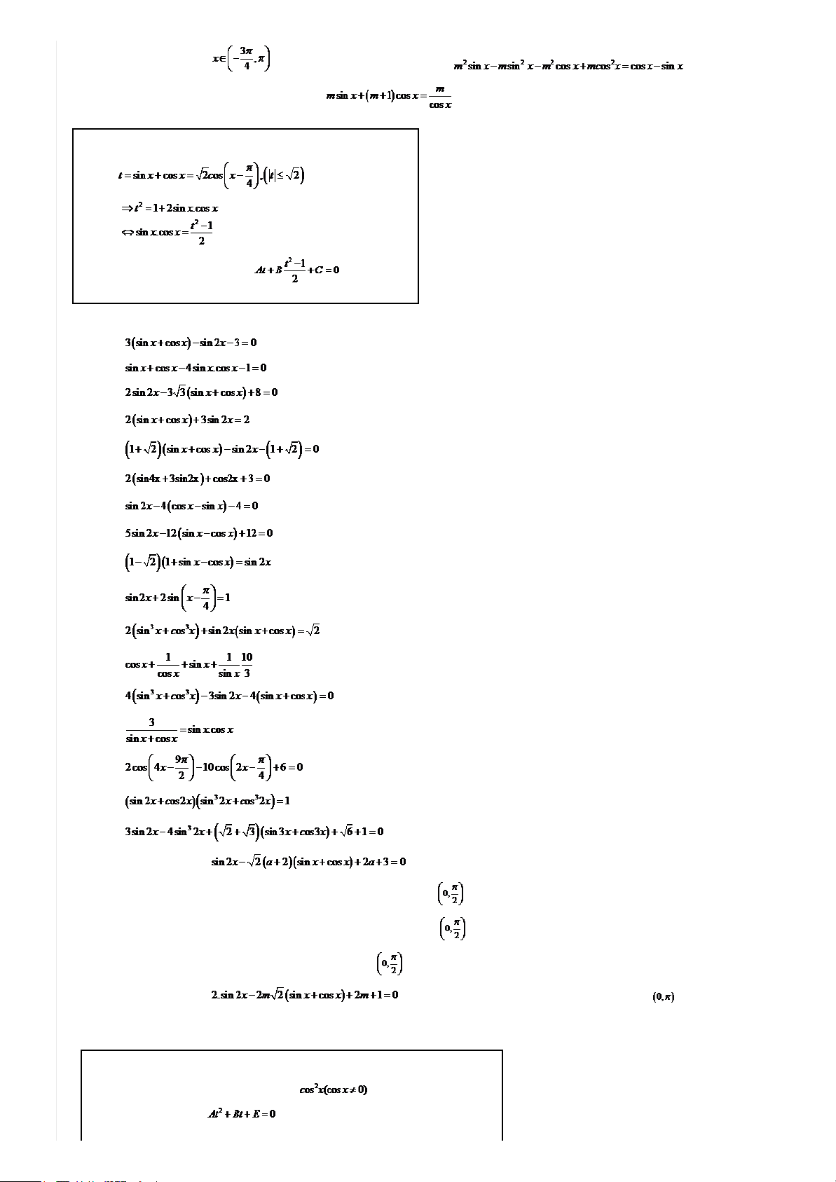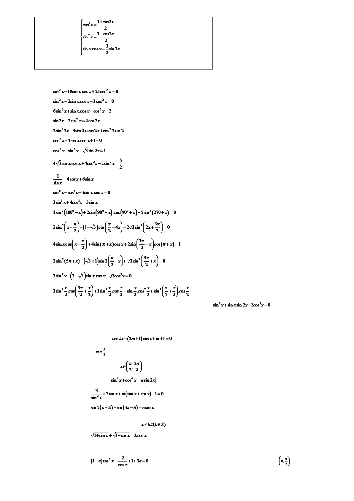 Để biến đổi phương trình về dạng bậc nhất đối với sin2x và cos2x (Acos2x + Bsin2x = C). GI I CÁC PH NG TRỊNH SAU : 260) 261) 262) 263) 264) 265) 266) 267) 268) 269) 270) 271) 272) 273) 274) 275) 276)