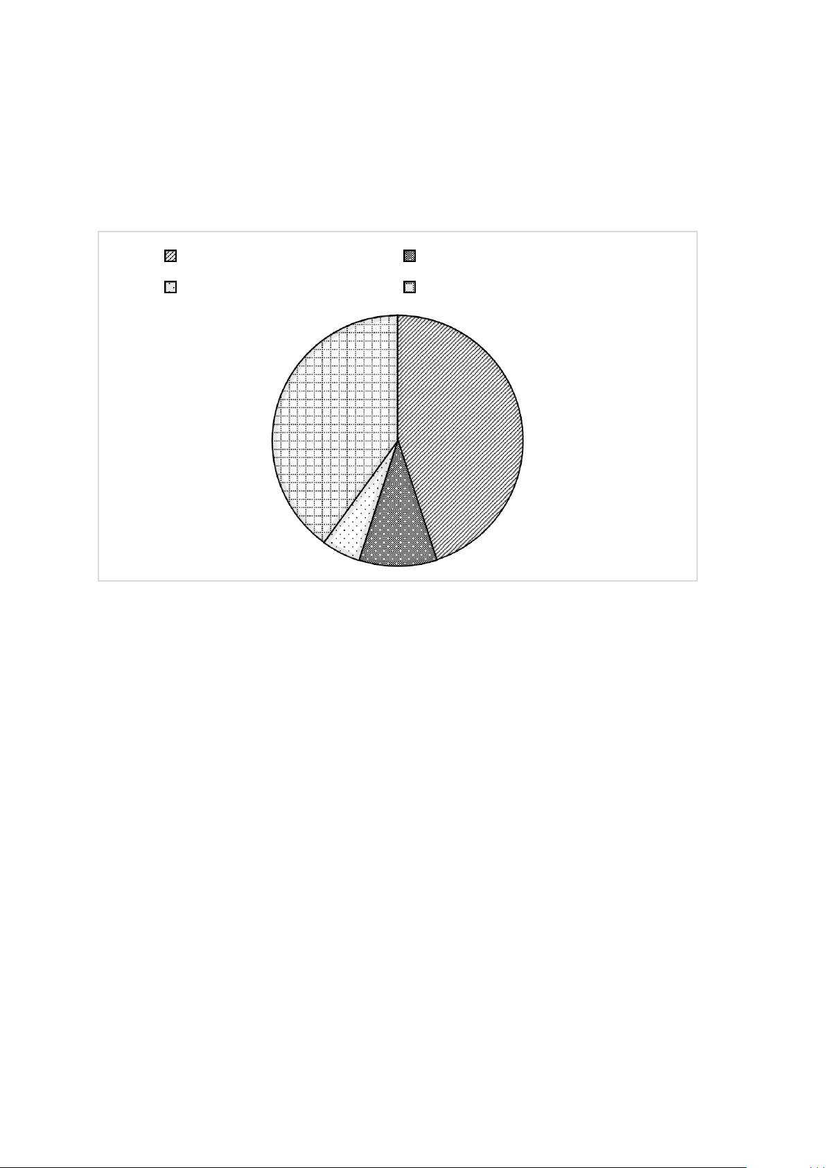 Bài 6 NB. Biểu đò hình quạt tròn sau đây biểu thị tỉ lệ phụ nữ 15 − 49 tuổi sinh con thứ ba trở